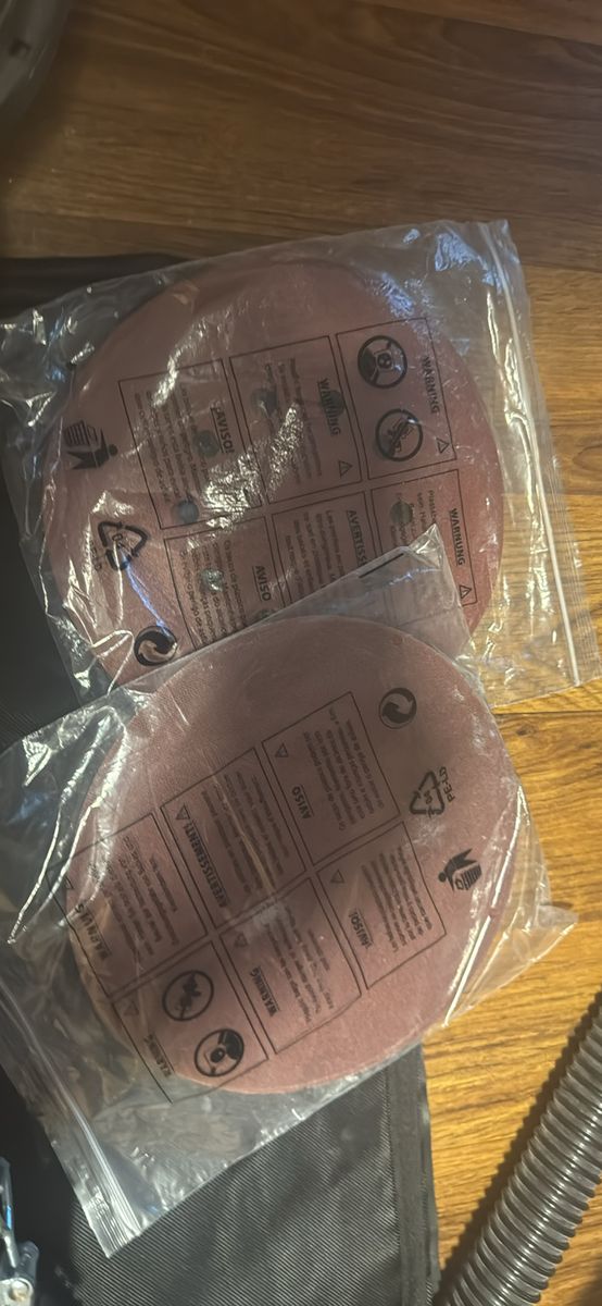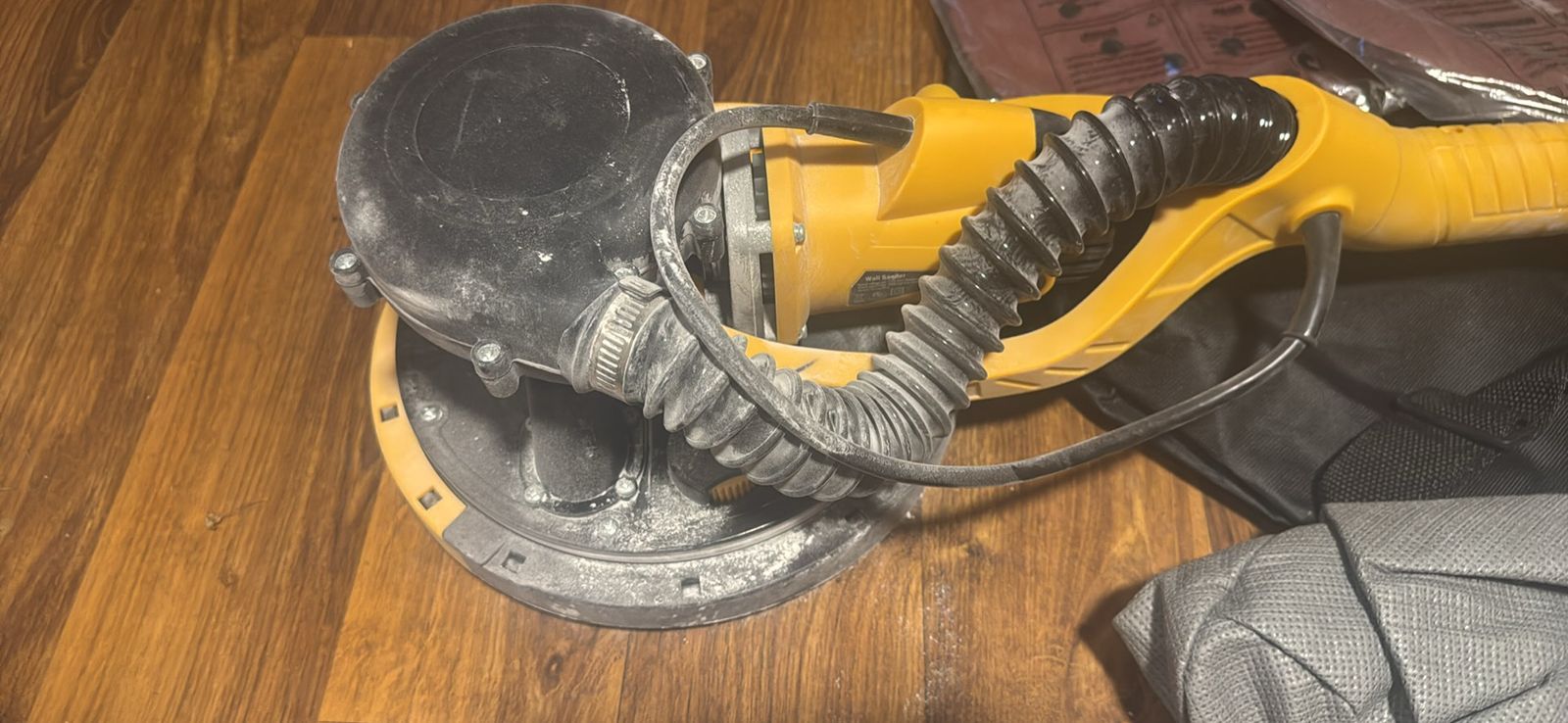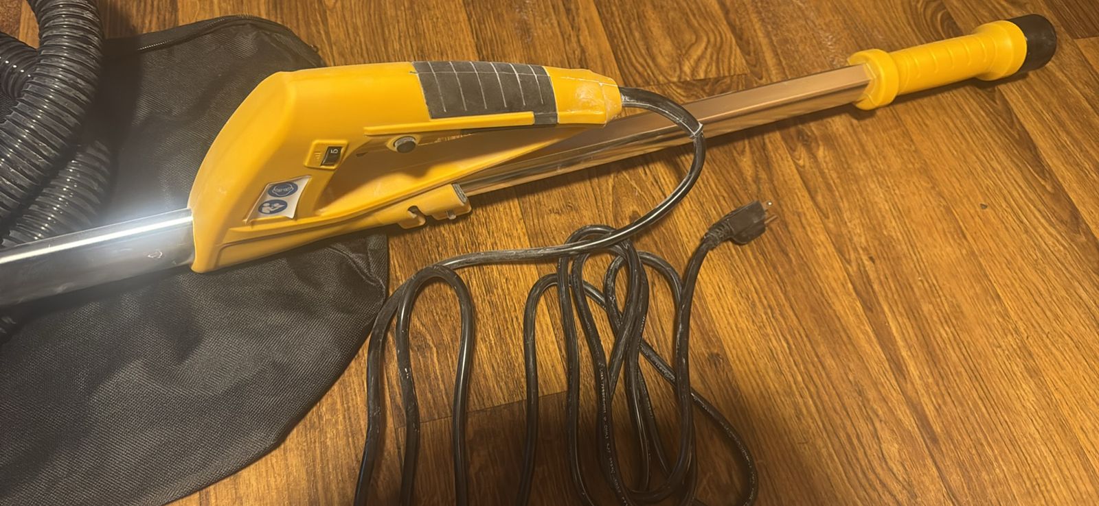 VenmoEfficient electric drywall sander. Has a long handle and a dust collection system with hose and bag. Includes two new sanding discs still in package. Handy tool for wall projects.