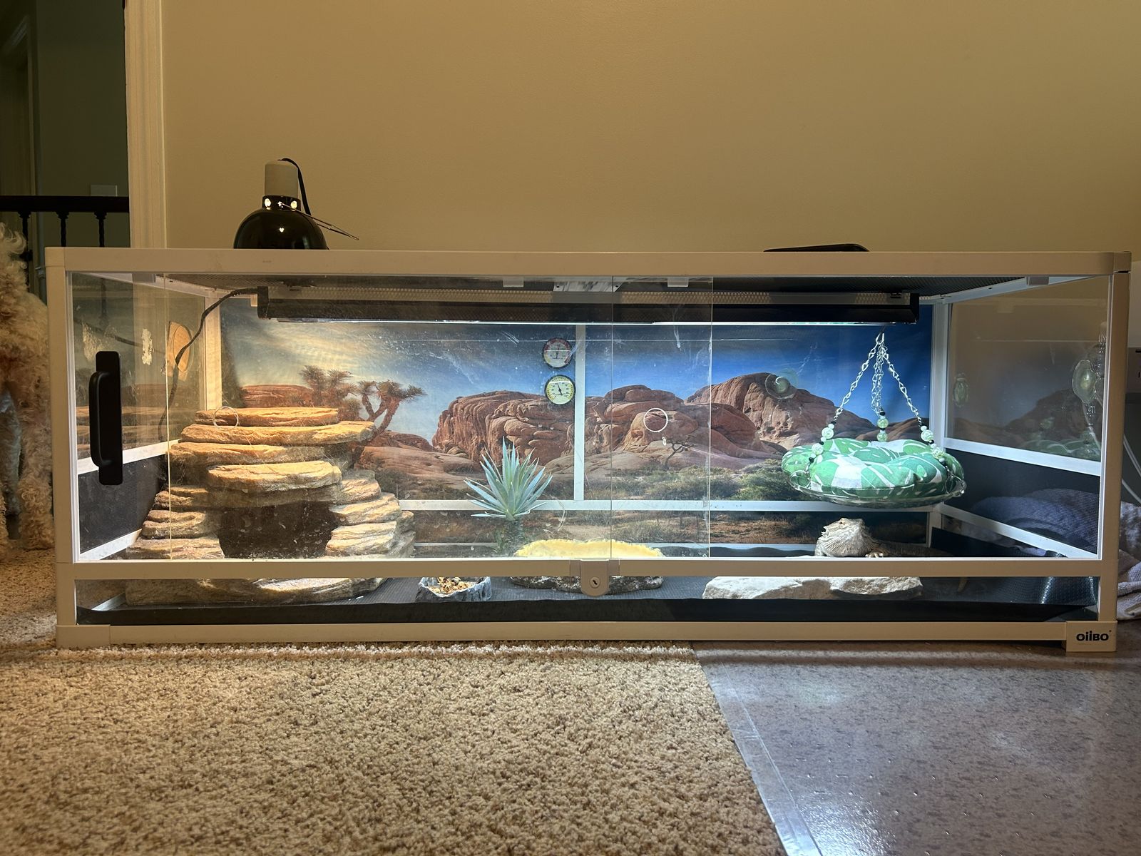 VenmoI have a five-year-old healthy male bearded dragon. He is very loved but I am having a hard time giving him the time and attention he deserves with a new puppy in the home. Listing includes all items pictured: tank and fixings, dried fruit and veggie mix, extra light bulbs, roach food, and roach breeding bin (containing roughly 200 roaches).
