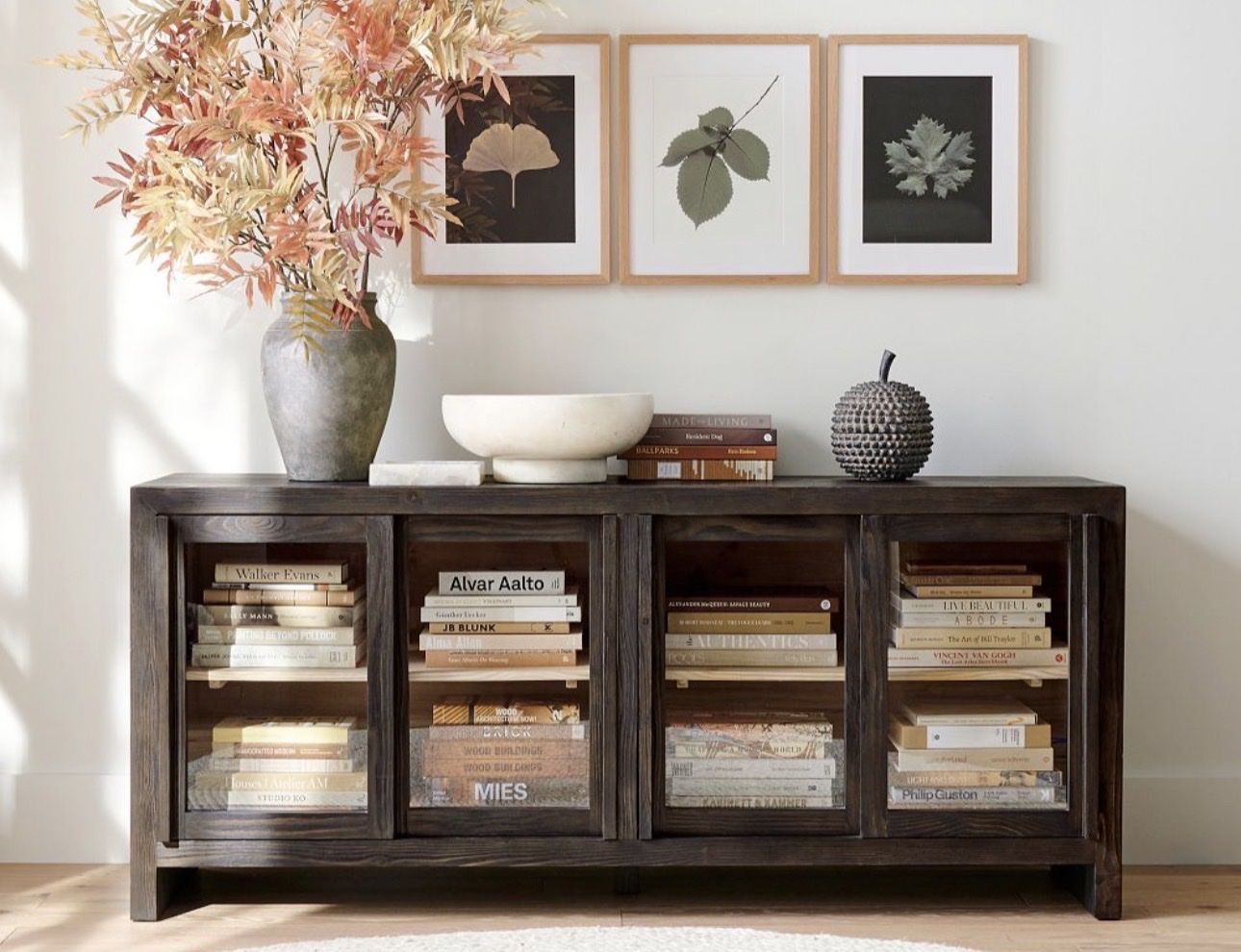 Construction Desert Pine or Charcoal finish is crafted from sustainably harvested, kiln-dried SPF wood and veneer engineered wood. Muir Brown or Cerused Natural finish is crafted from sustainably harvested, kiln-dried oak wood and veneer engineered wood. Expertly crafted of solid kiln-dried wood. Kiln-dried wood helps prevent warping, splitting, cracking, and developing mildew. Features 3 adjustable shelves and 1 fixed shelf behind cabinet doors. Adjustable levelers add stability on uneven surfaces. Contract Grade: Thoughtfully designed and expertly engineered to meet rigorous testing standards and best practices from select ANSI/BIFMA testing protocols. UL GREENGUARD Gold Certified. This low-emitting product has been screened for over 15,000 chemicals and VOCs to contribute to cleaner indoor air and keep you and your family safer. Overall: 73" w x 20" d x 32" h Doors (2): 43" w x 74" h Adjustable Shelves (3): 47.5" w x 15.5" d x 1" th Fixed Shelf (1): 48" w x 16.5" d x 1" th