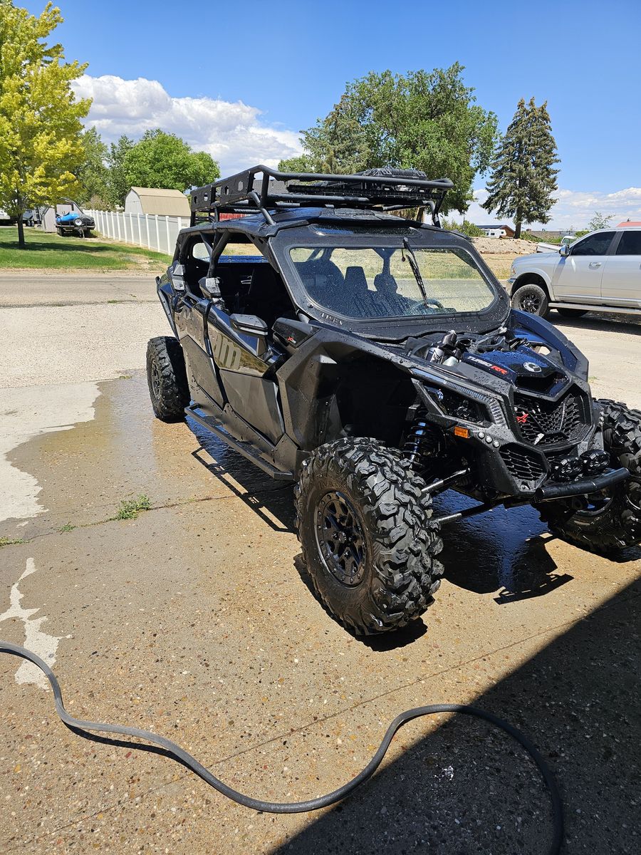 2023 canam x3 1700 miles. Glass vented windshield and rear windows. Winch bumper and 5500 lb winch. Side by customs full metal lowers with rock sliders build in. Rear plate with 2 inch tow adapter. Roof rack. Weather proof case with recovery gear and flat tire gear. Spare belt. Fire extinguisher. 2 gun racks. Retractable harness all 4 seats. Amsoil oil change kit. Lower door panels front door storage bags. LED light bar and LED pods. Low profile cooler in the bed area. $28,500 obo