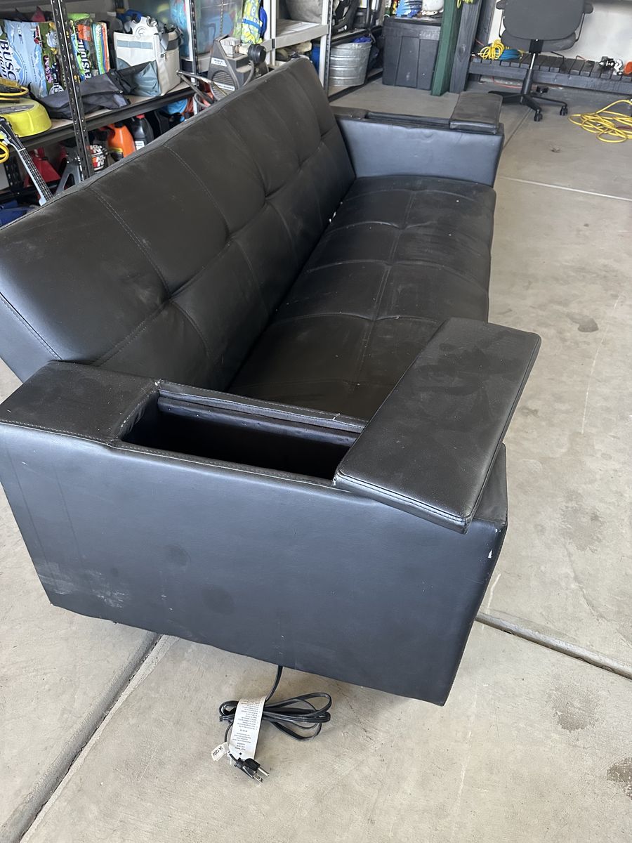 VenmoFuton with power outlets and storage in both arm rests. In decent shape just don’t use anymore