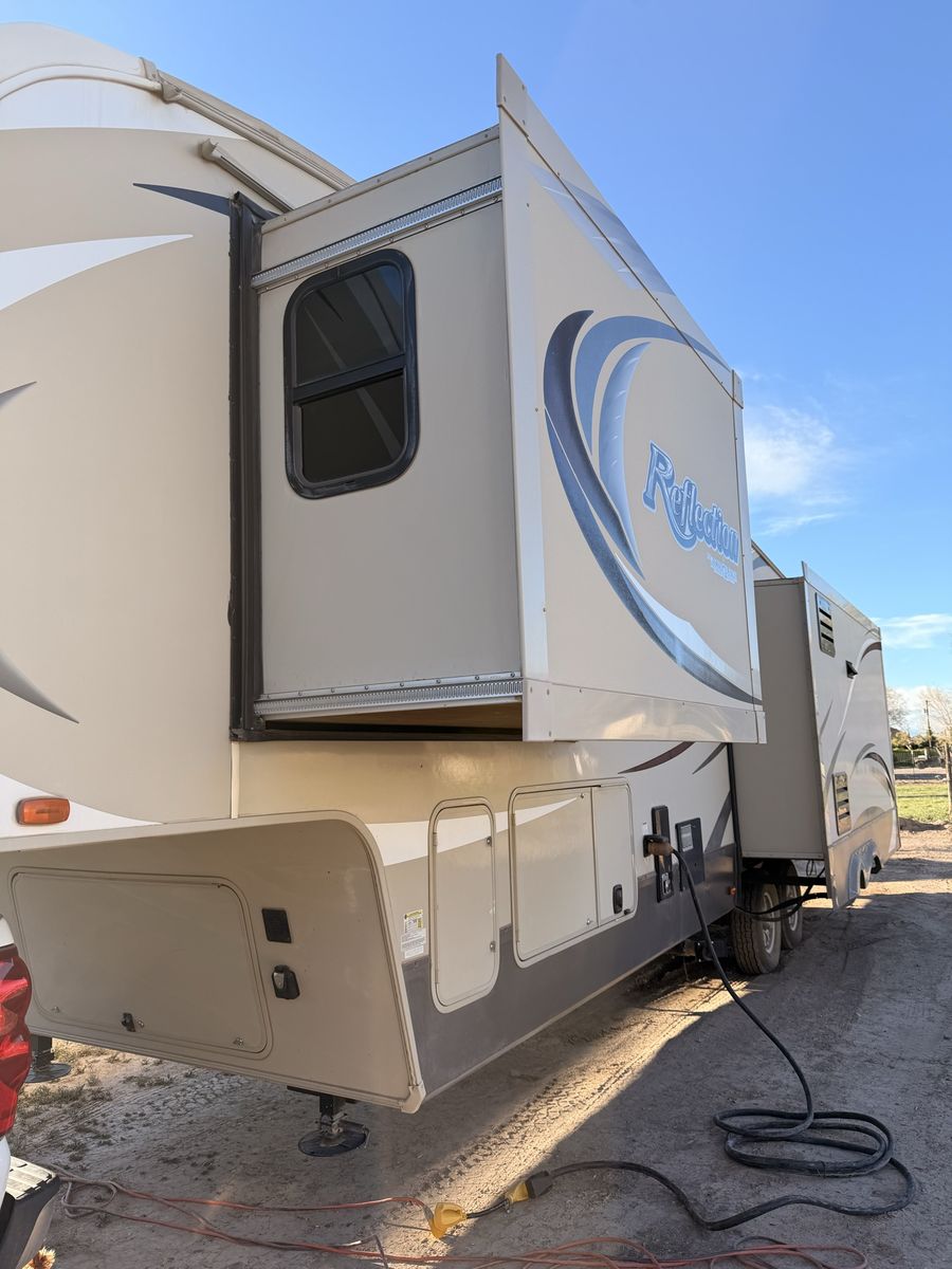 2015 Grand Design Refection 337rls model. This trailer is the 4 seasons package with the entire bottom insulated. Heater works great and Two ac units one in bedroom and one in the kitchen/ living area. Full size fridge, microwave, pantry, and island. Bedroom Fits a king size bed with a walk in closet has washer dryer hookups in the closet . Bathroom is great size with a Walk in shower. Couch bed included. Sleeps 4 comfortably. Reach out with any questions, trailer is in great shape and ready to go on your next adventure !!!!