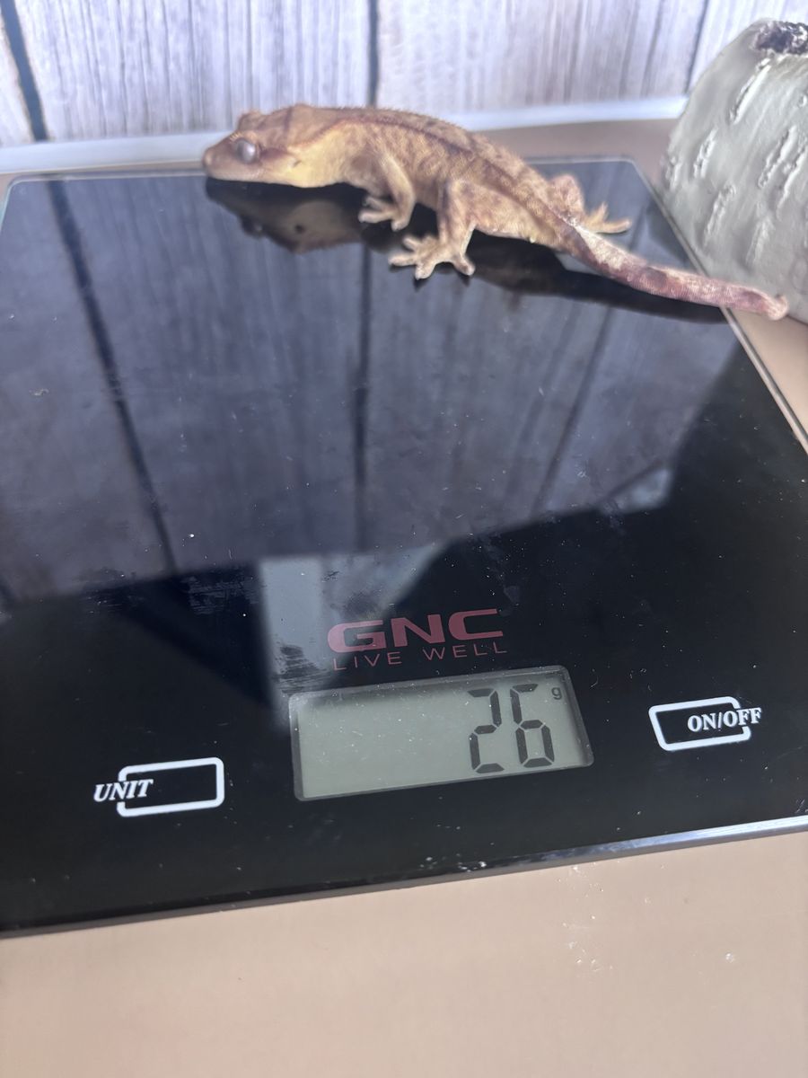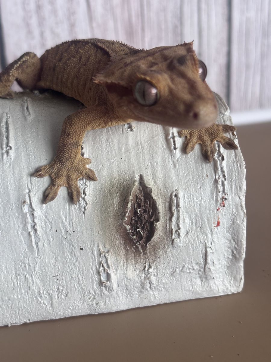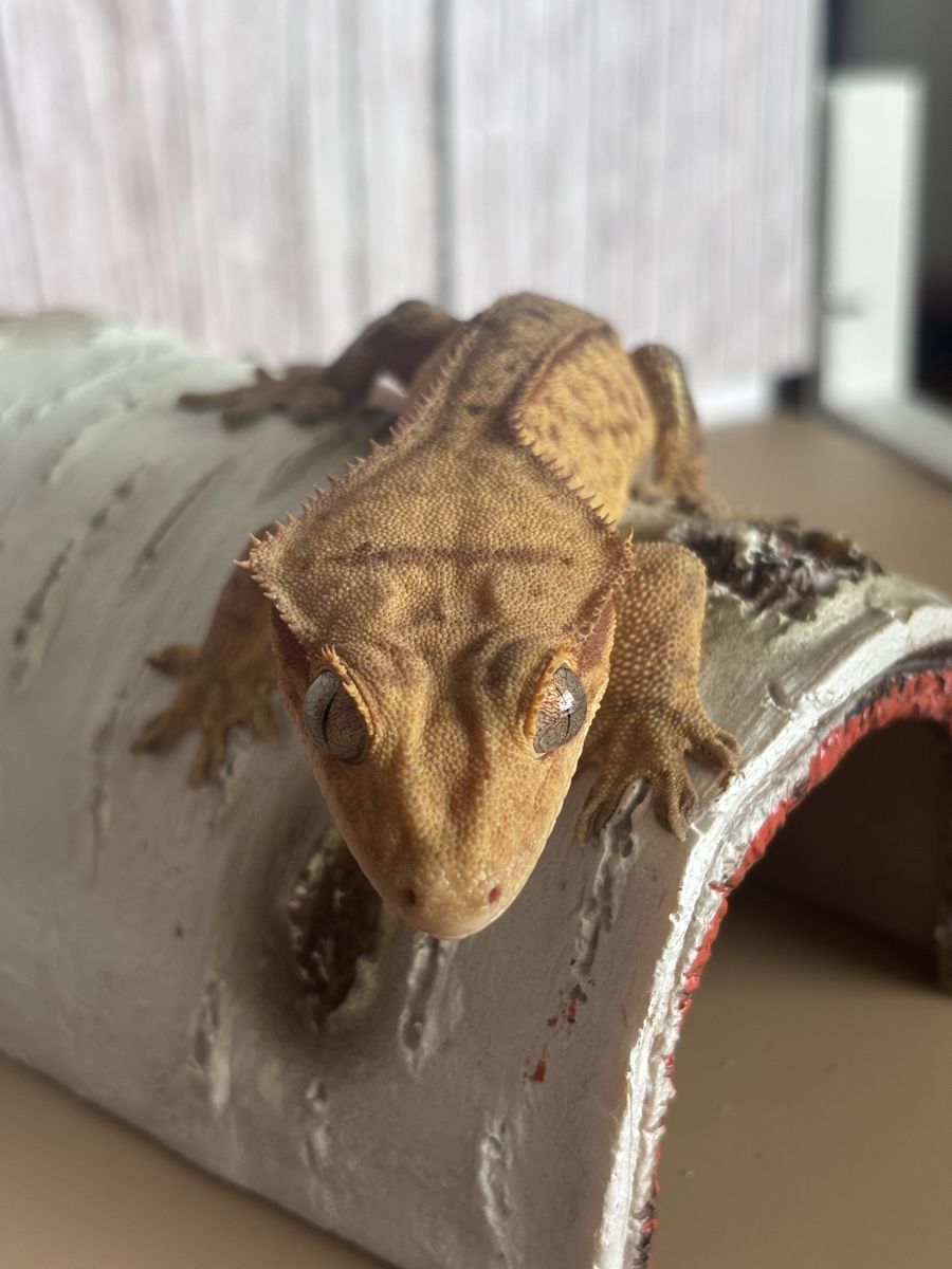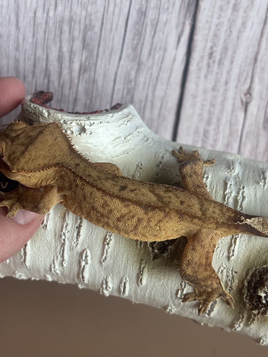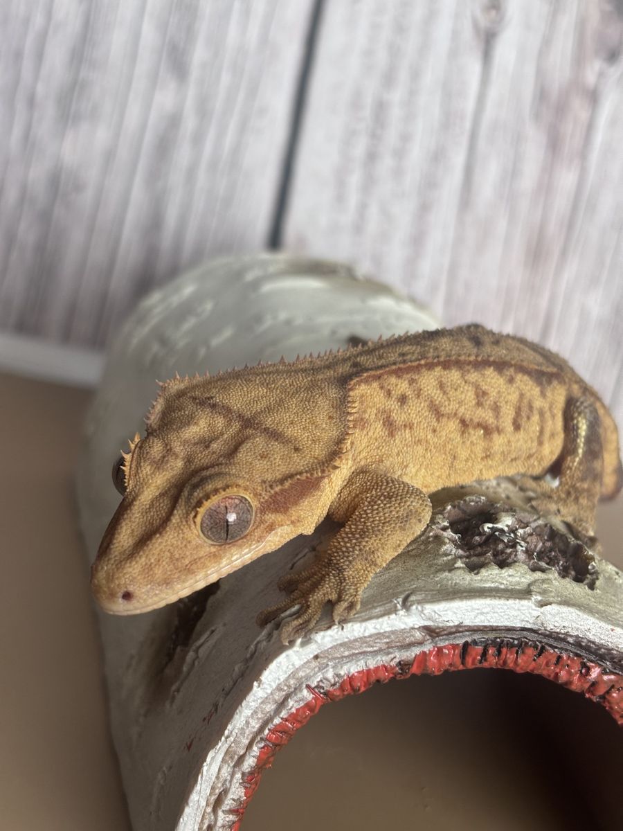 ZelleFemale yellow brindle , w/ reverse pin stripe. HD 6-20-24 . Weight is 26g. She has a tail kink at the very end of her tail that developed in The egg. I do not believe it is genetic as non of her siblings have this. SERIOUS INQUIRIES ONLY. NO TRADES