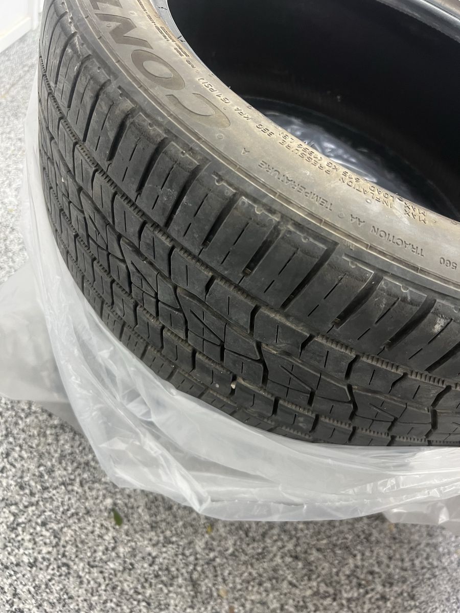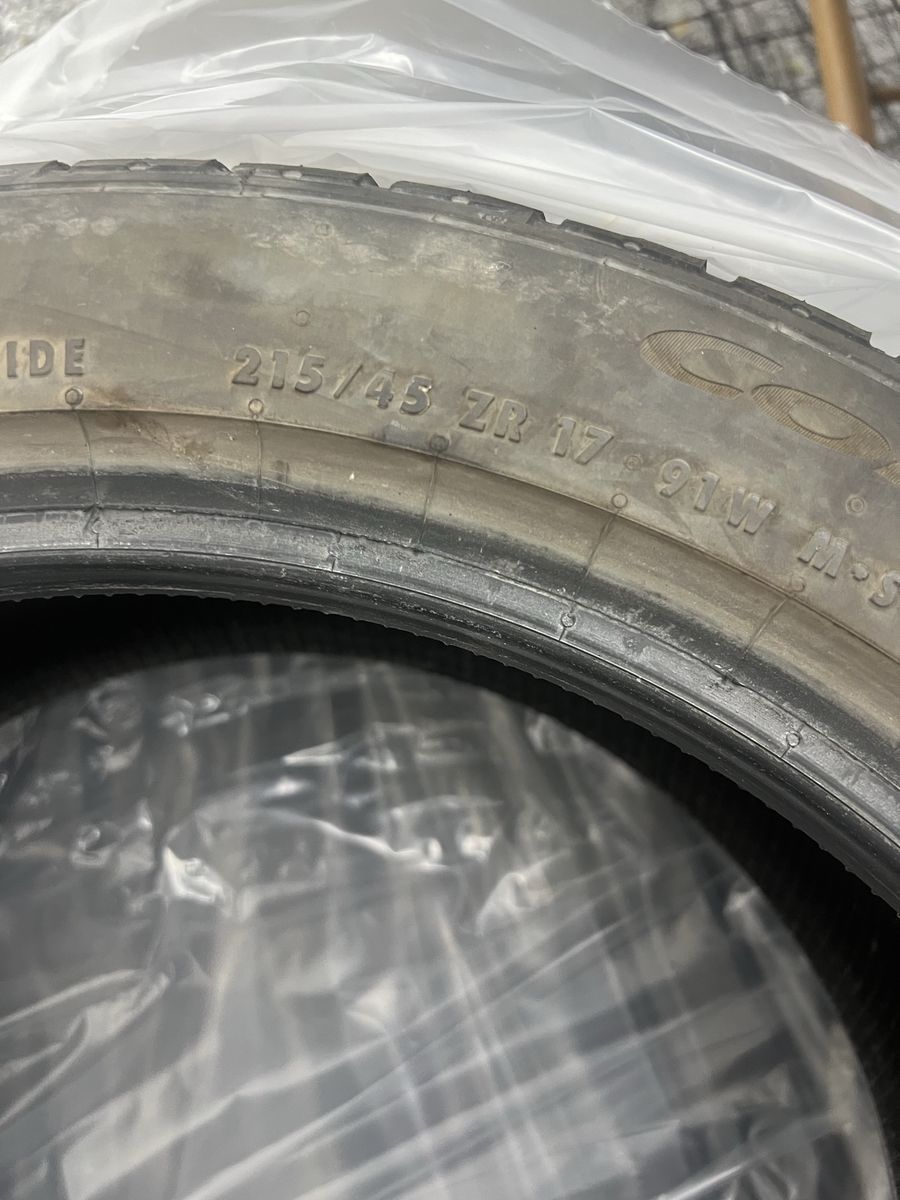 PayPal3x used Continental ControlContact Sport srs+ M+S rated all season tires. Size 215/45 r17. Had these on a Fiat 124 spider but one tire got a bad sidewall puncture and couldn’t be repaired. Decided to put summer tires on the car instead so just took the 3 good tires off. Plenty of tread left. Manufacturer year of ‘22 so still a few years left before they age out.
