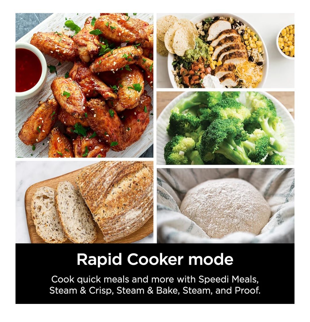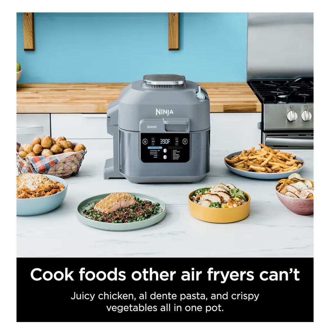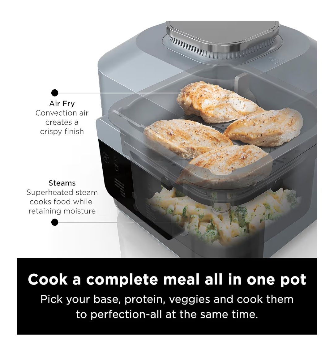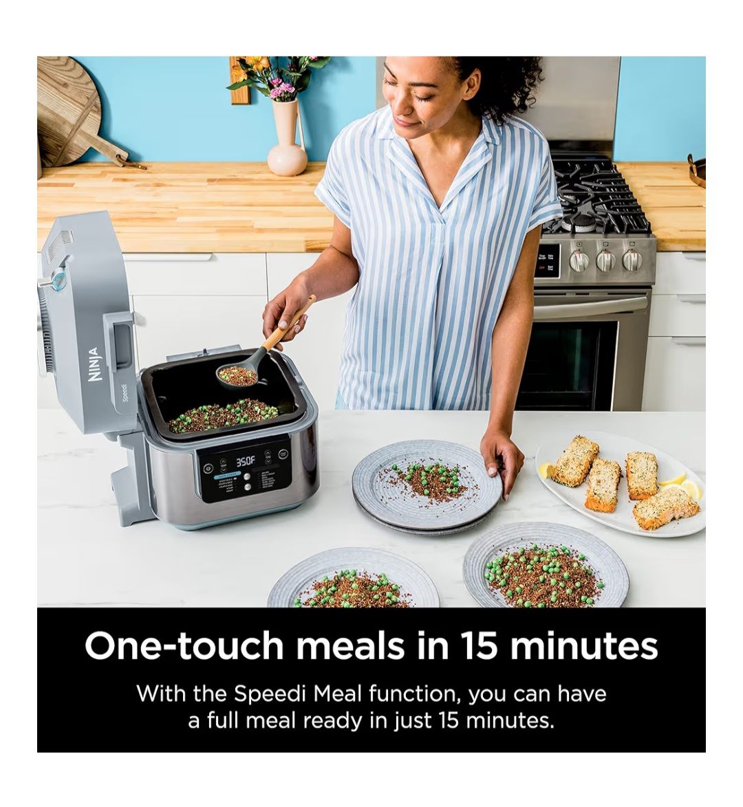 Brand new, never been used: "Ninja SF301 Speedi Rapid Cooker & Air Fryer, 6-Quart Capacity, 12-in-1 Functions to Steam, Bake, Roast, Sear, Sauté, Slow Cook, Sous Vide & More, 15-Minute Speedi Meals All In One Pot, Sea Salt Gray". $75.00 obo.