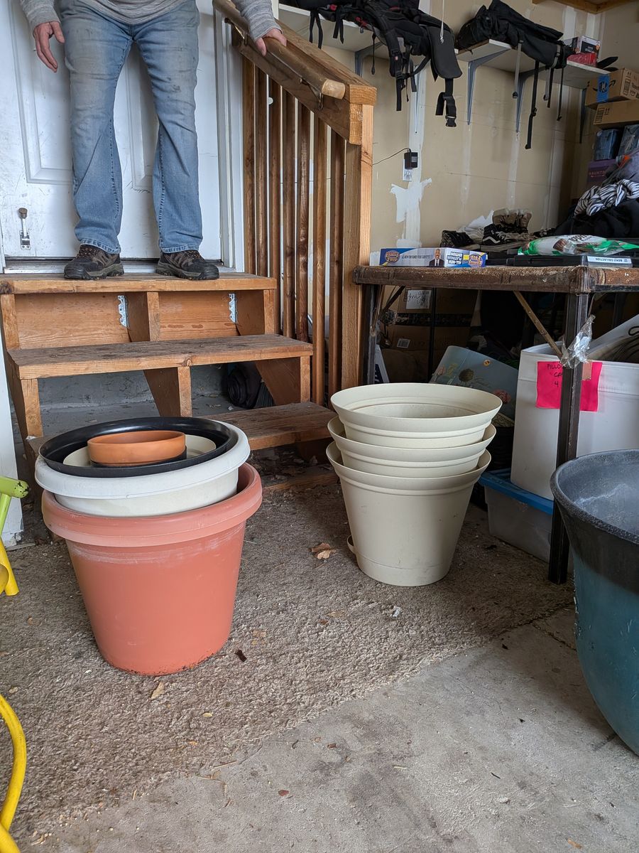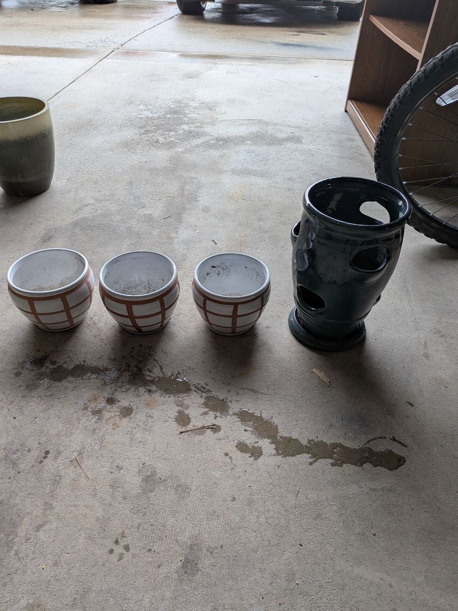 I have a bunch of planter containers up for grabs. Some are ceramic and some are plastic. See prices below. No cracks all in working order.