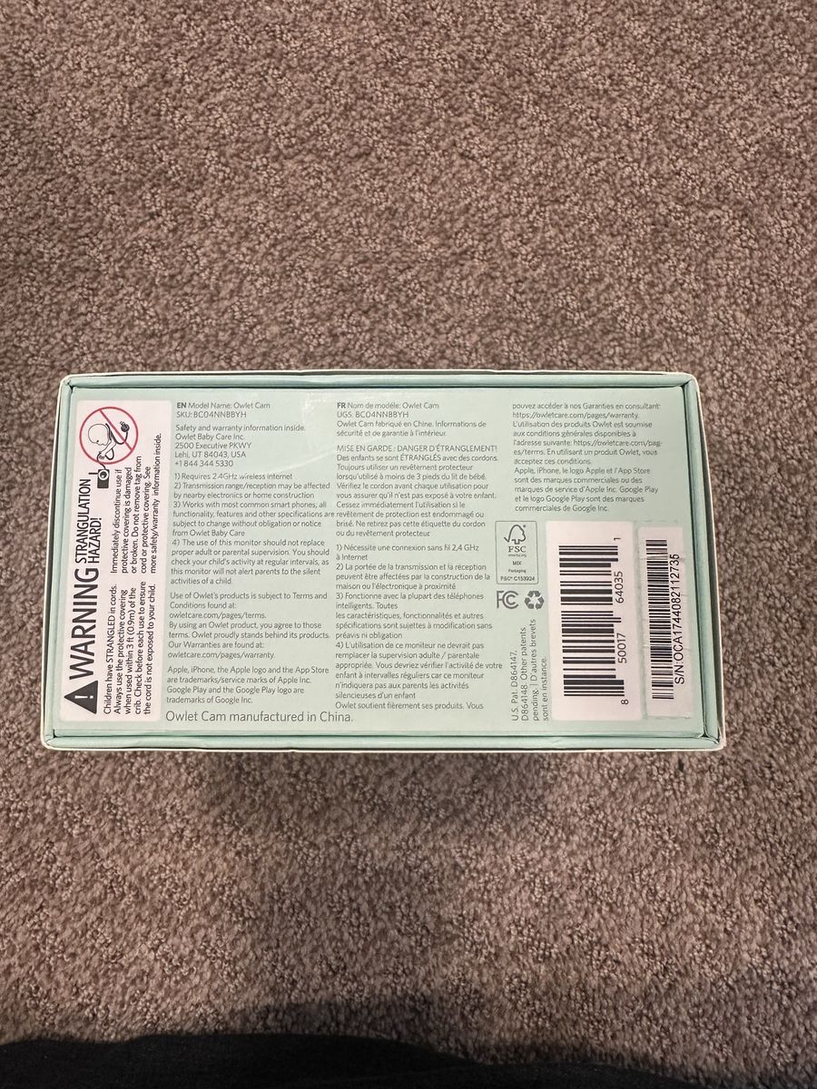 Owlet Camera comes with everything to include the camera, charger, and wall coverings.