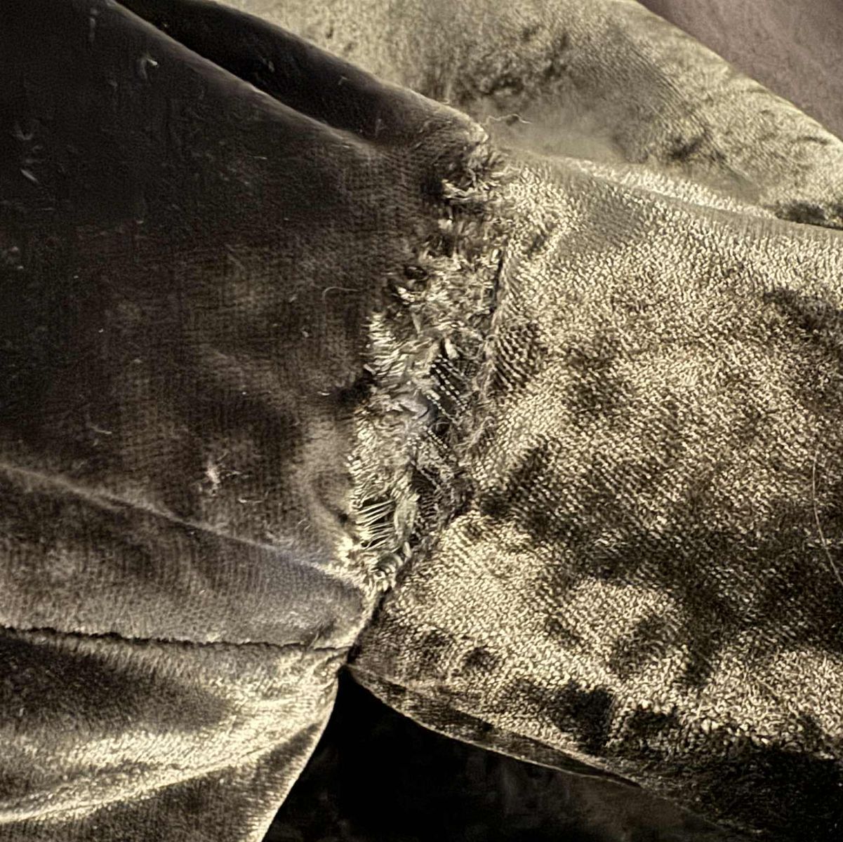 Jacket is in mostly, very good condition. There is a tear under the right arm. See last photo. Otherwise, there are no defects.