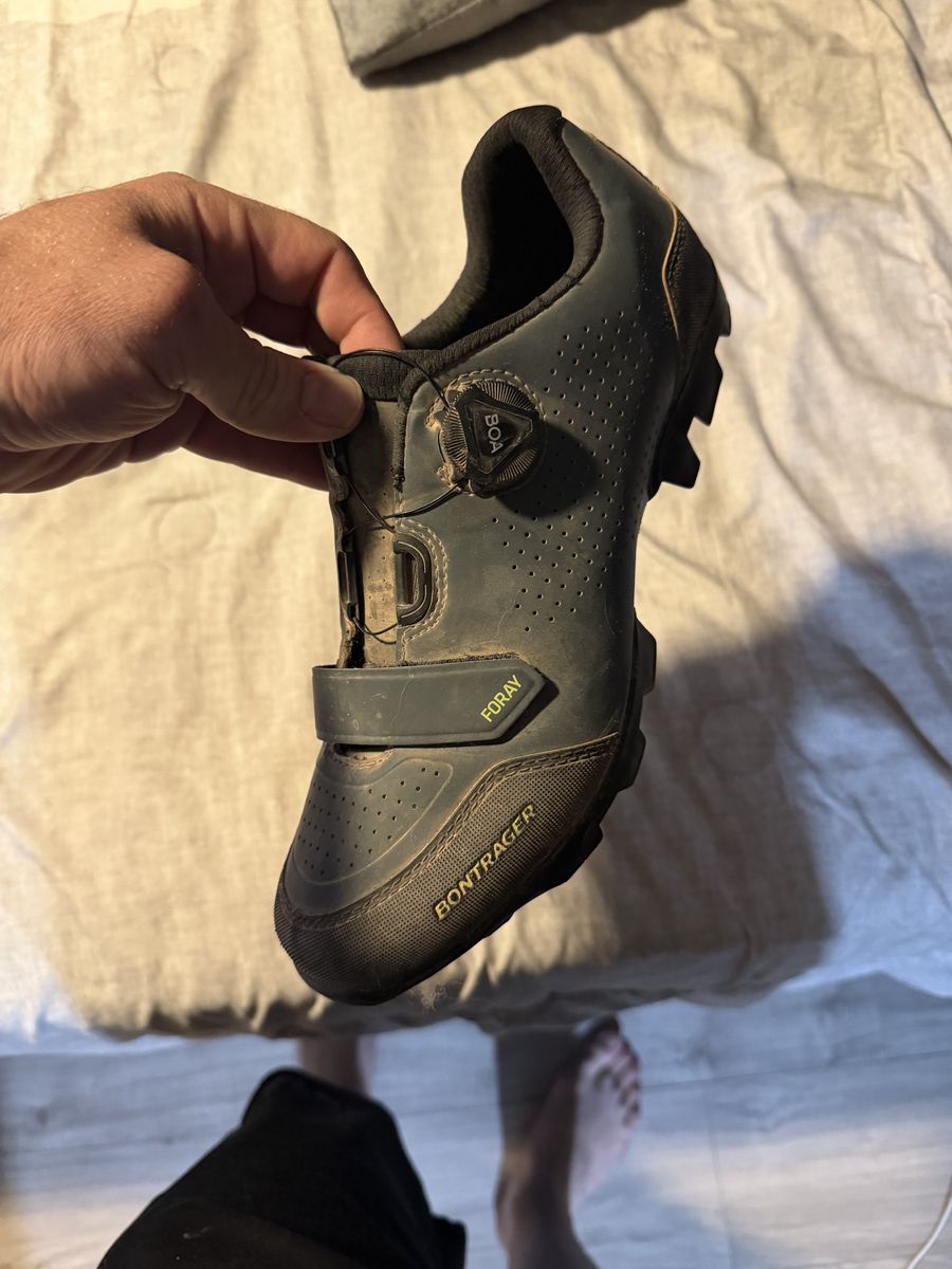 Good pair of Bontrager Foray mountain bike shoes with BOA dial system. Easy to tighten/loosen and gives a solid fit while riding.