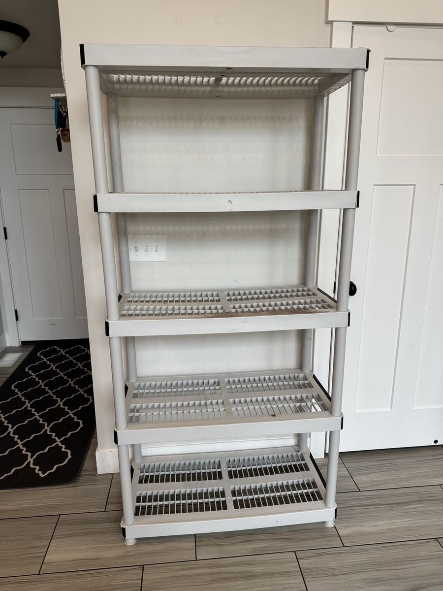 Venmo5-Tier Easy Assembly Multi-purpose Plastic Garage Storage Shelving Unit in Gray (36 in. W x 72 in. H x 18 in. D) by HDX