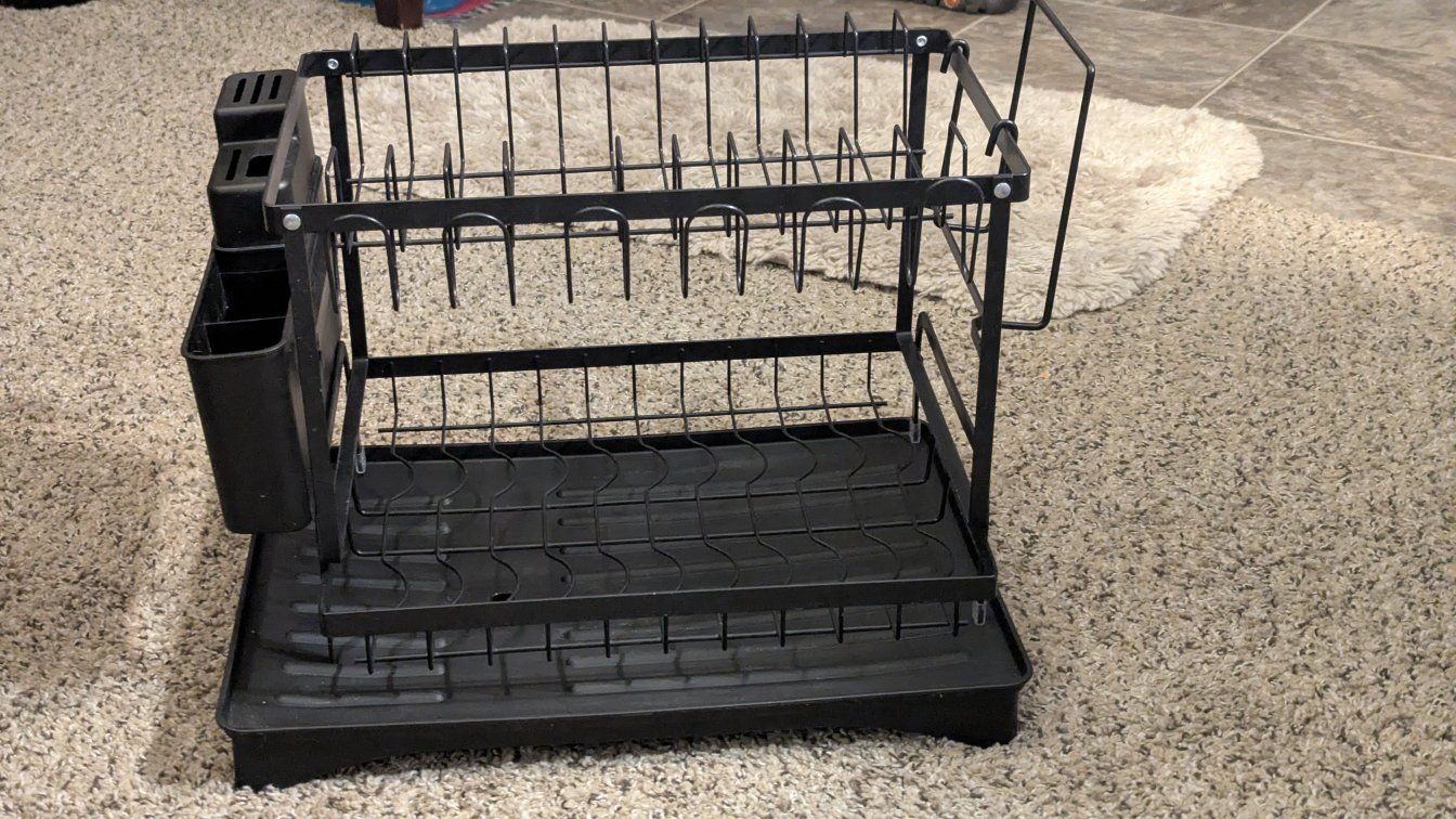 GooglePayDishes finally got an upgrade to their own 2 story house!! Lol you have double the space plus a side piece for li for lids etc and utensil holder is on the outside. I moved and don't need it.