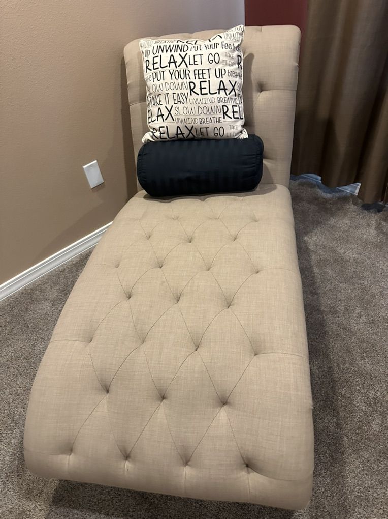 VenmoThis is a gorgeous, and comfortable, tufted chaise lounge that perfect for any bedroom or living room. It’s in perfect shape and the roll pillow is included. The wooden legs can be easily removed if wanted to have this lower to the floor. Asking $175.00 OBO