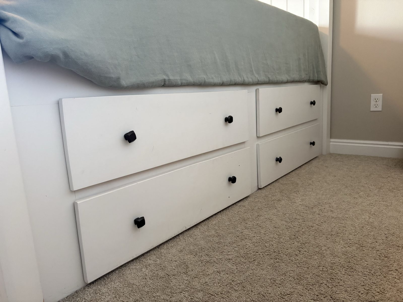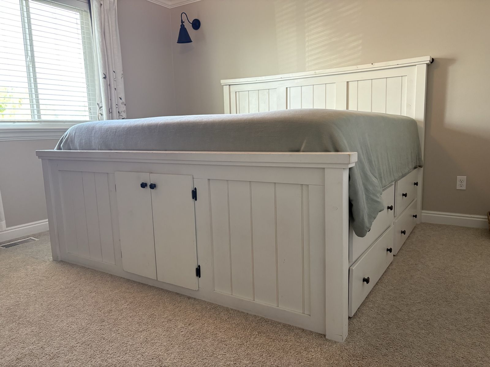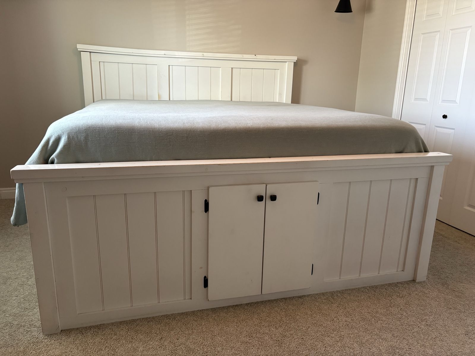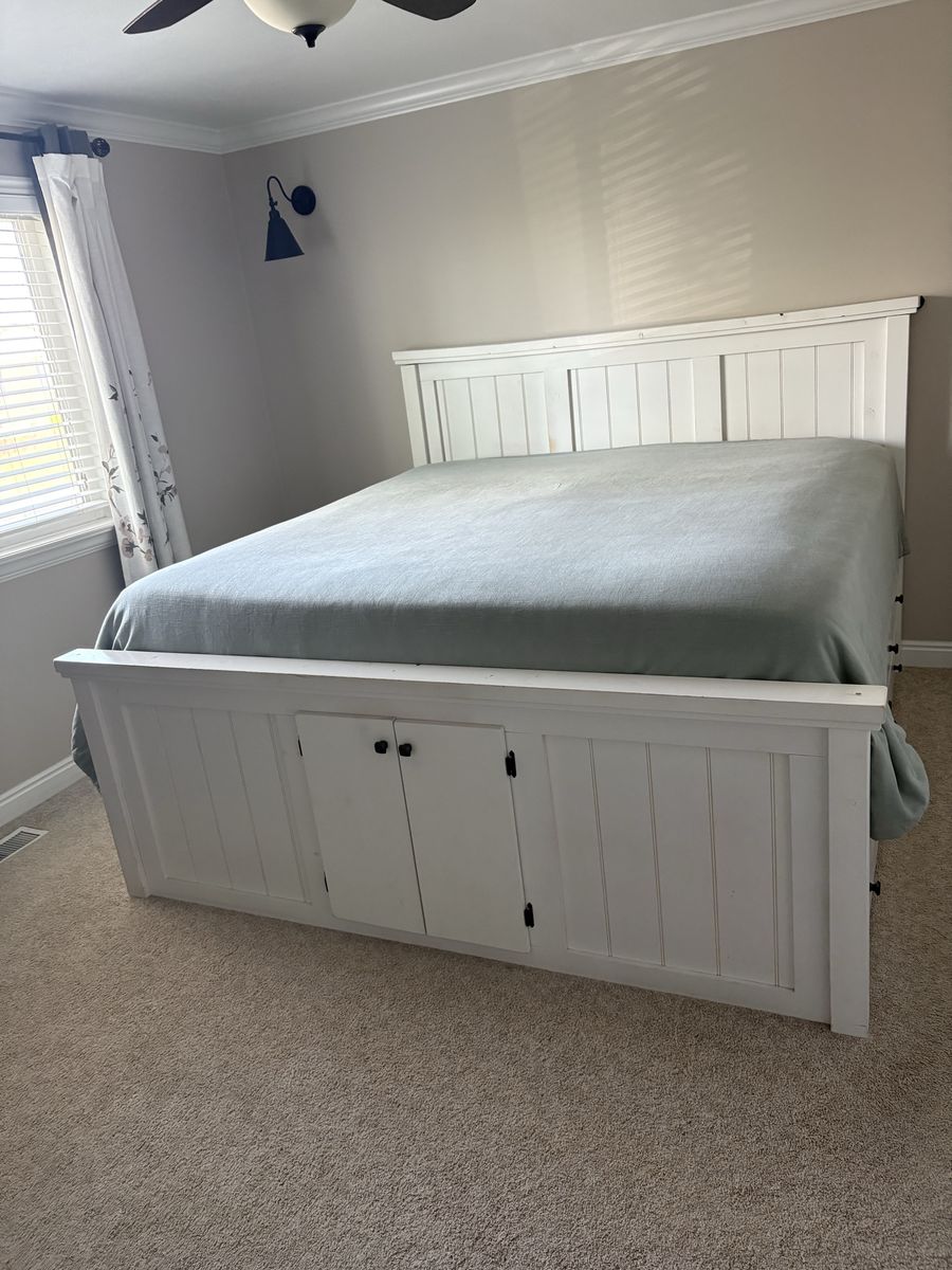 VenmoCustom made king size platform bed frame with 8 large drawers (four on each side) and spacious center storage with access doors.