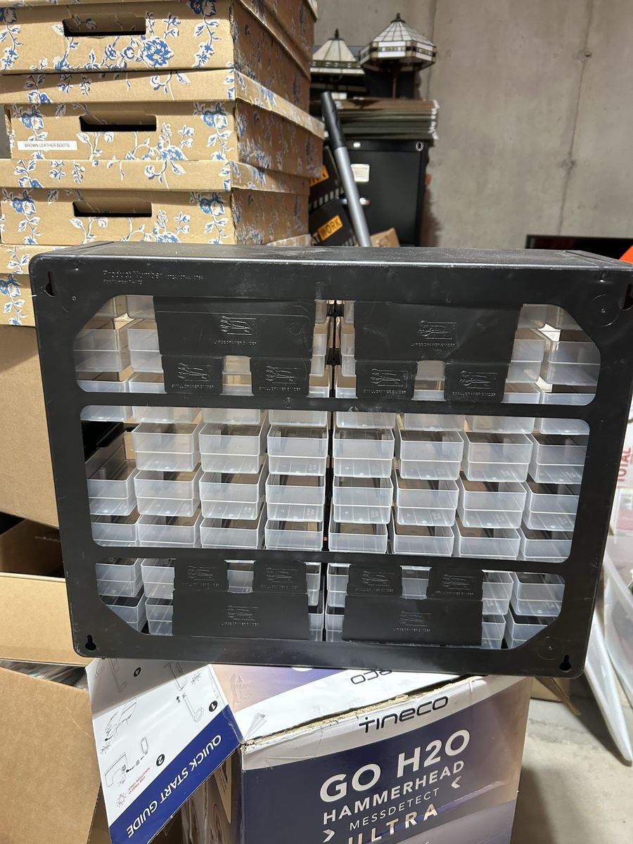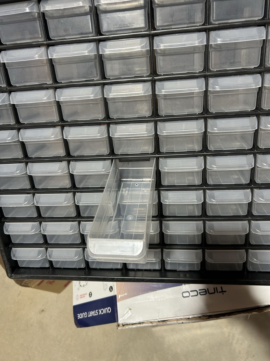 VenmoLike new condition from a crow Mills 64 drawer tool craft organize your bin in black frame. Clean smoke free. Missing one drawer that can be easily replaced. Cash or Venmo. Located in and picked up from Alpine.