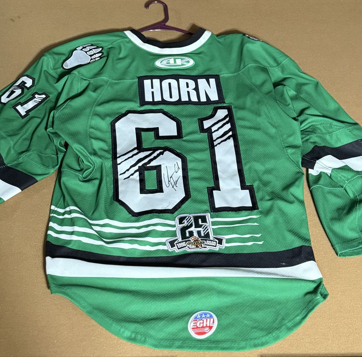 Zelle#61 Christian Horn game worn and autographed Utah Grizzlies throwback jersey