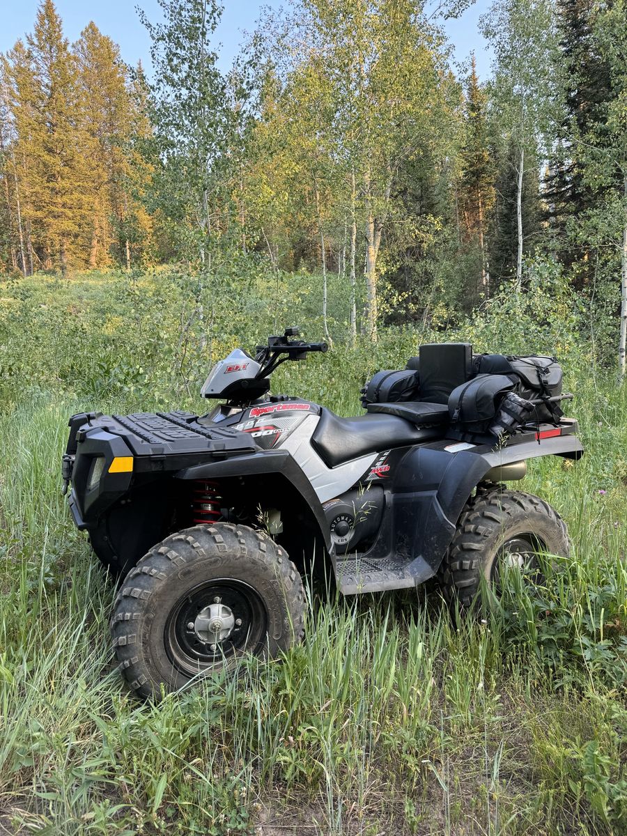 ApplePaygreat four wheeler, runs amazing, has a new $300 sealed battery, new one way bearing for the engine braking, passenger seat cushion, Polaris brand winch, all fluids just recently changed (diffs, trans, engine oil)