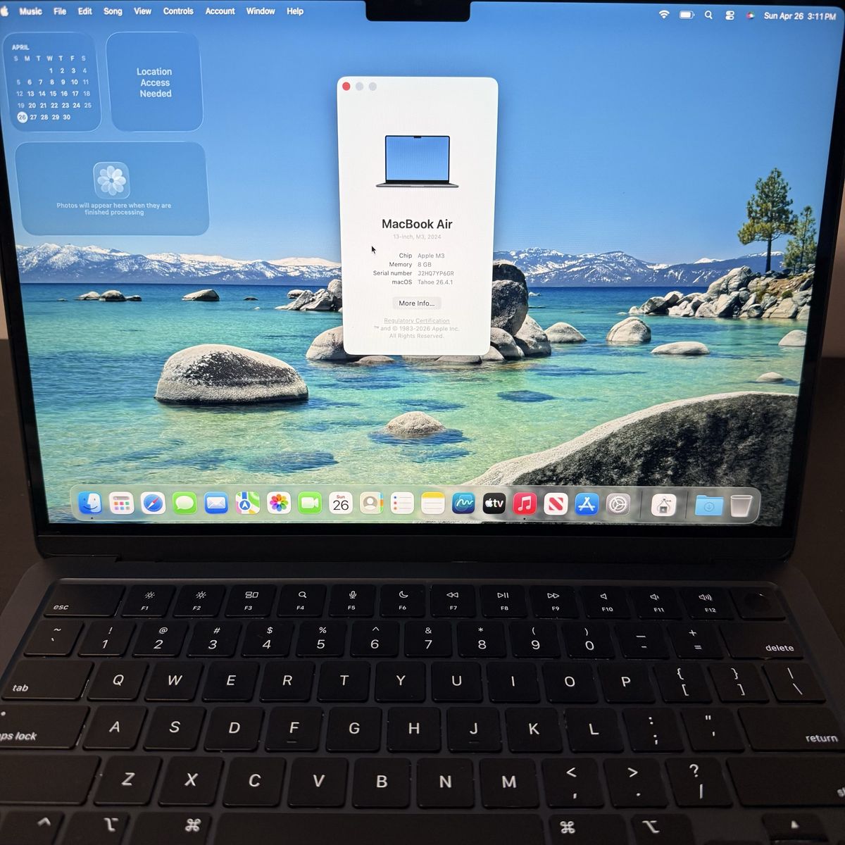 VenmoMacbook Air M3 8 GB RAM/256 Storage, 13 Inch. Works as new with no issues or dings. Comes with charger. Running the newest Tahoe software.