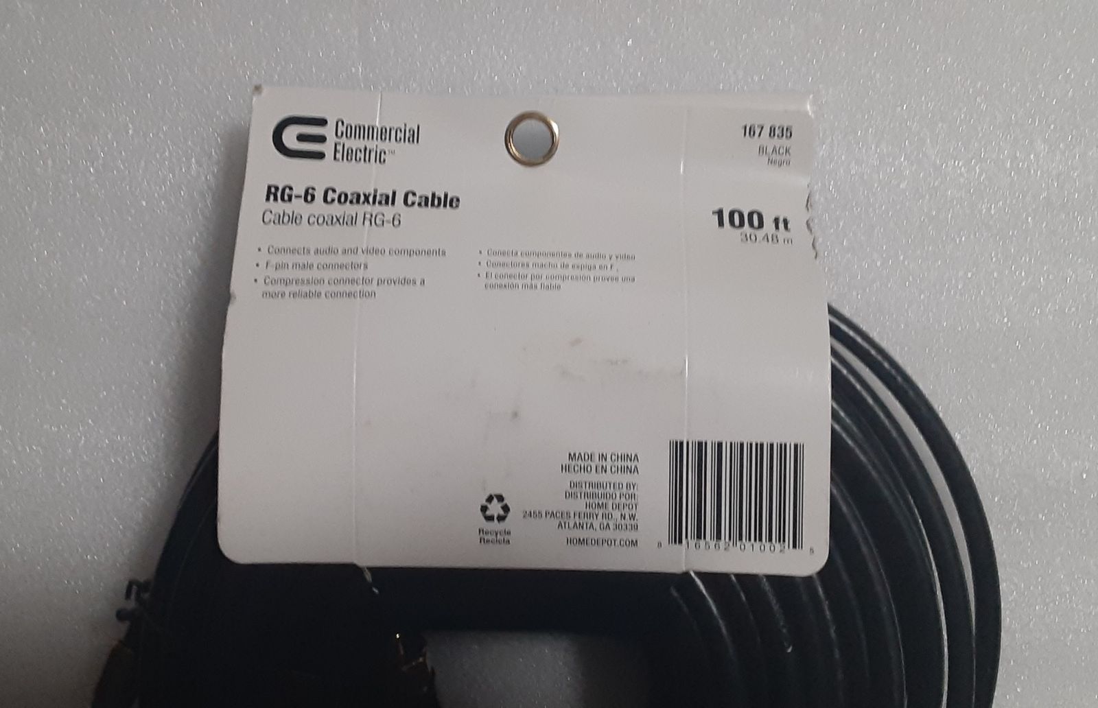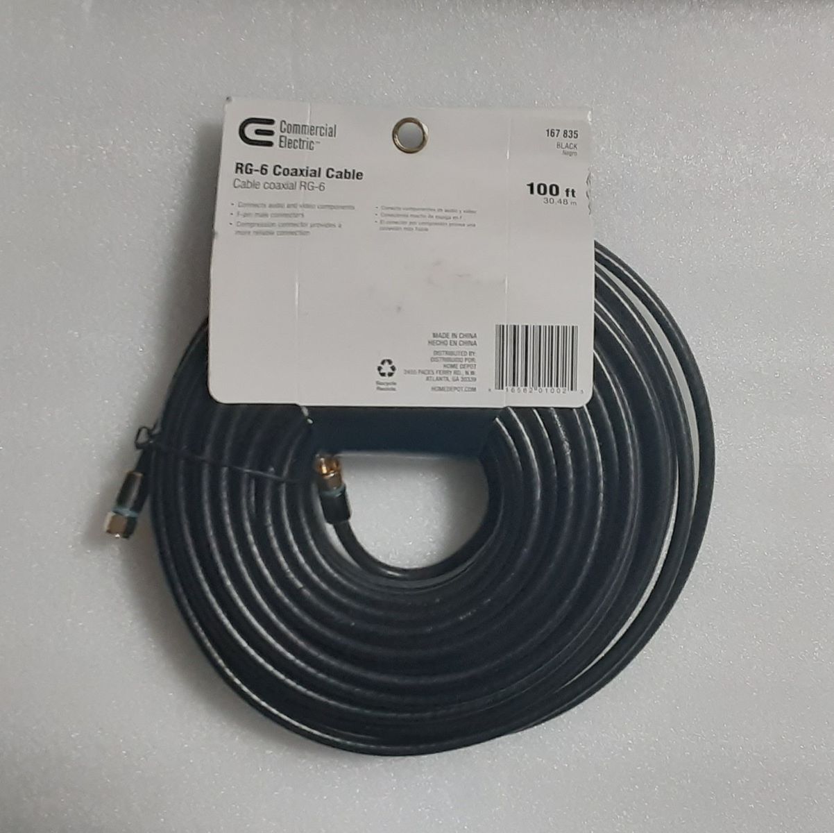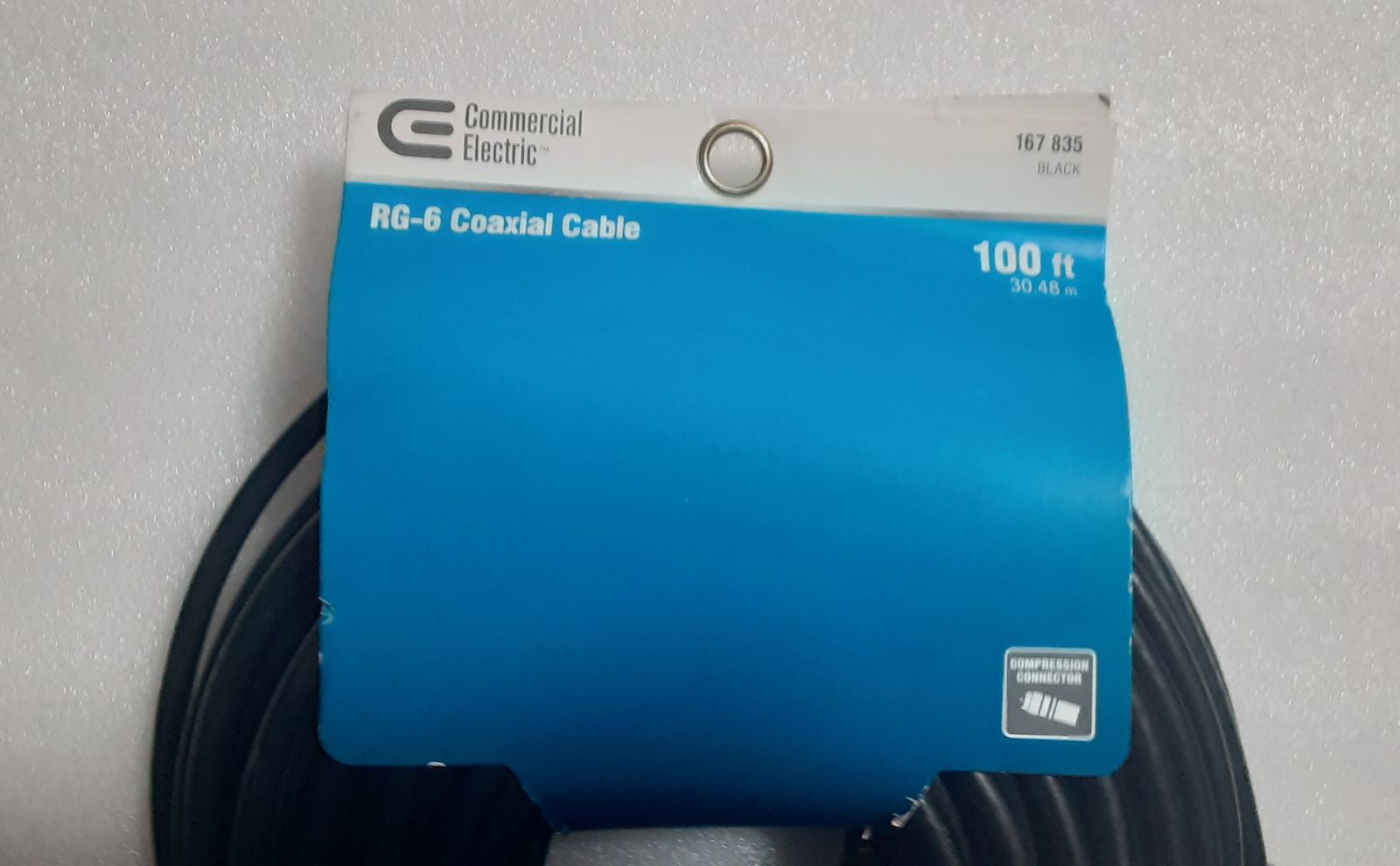 This Is A New RG-6 Coaxial Cable With F-Pin Male Compression Connectors - 100-ft Roll From Commercial Electric.