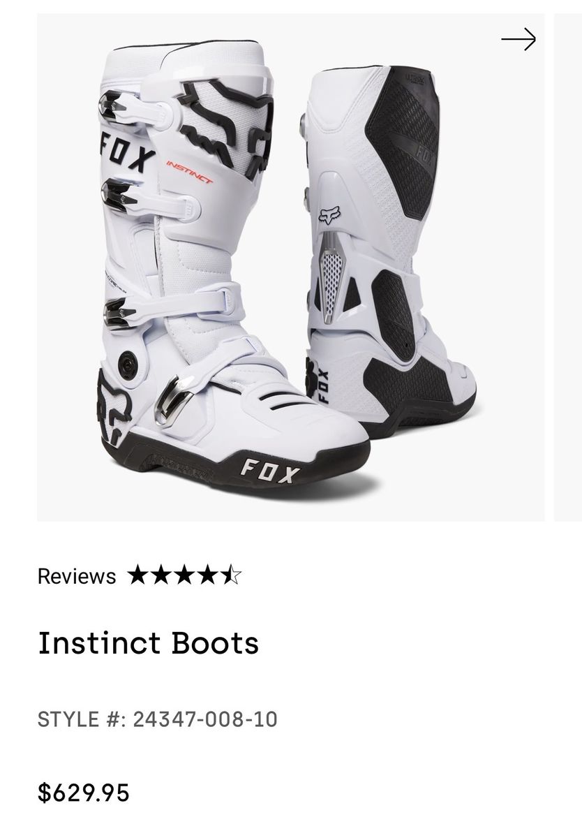 ApplePaySize 12M — Brand new in box, only have one ride on them. The all-new Instinct Boots are tailor-made for advanced and pro-level riders seeking best-in-class performance from their motocross boots. With major upgrades to fit, grip, and the closure system, the Instinct has been redesigned from the sole up with direct input from riders like Ken Roczen, Tim Gajser, Adam Cianciarulo, Ryan Dungey, and the Pro Circuit Team.