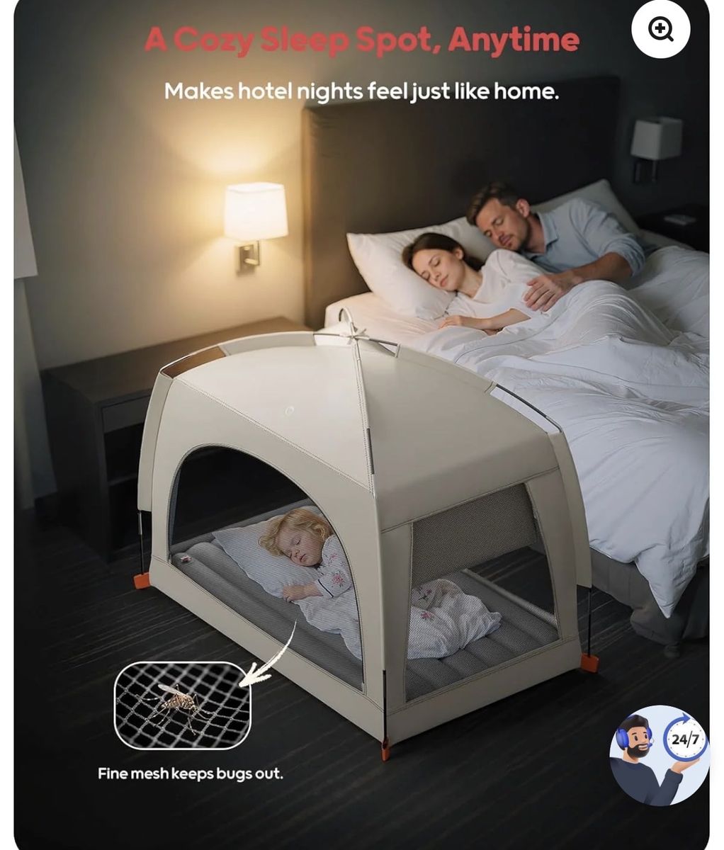 New Opau Inflatable Tent + Toddler Mattress Combo: This all-in-one inflatable toddler bed pairs a comfy toddler mattress with a pop-up tent that features dual zippered doors, a sunshade panel, and four-sided breathable mesh—creating a well-ventilated, shaded, and secure space for your little one to rest or play. Quick Setup Anytime, Anywhere: Comes with a hand pump, so you can start inflating right out of the box. And the foldable tent poles make setup simple—perfect for camping or on-the-go parenting. Soft & Spacious Sleep Surface: With a flocked top for cozy comfort, this toddler bed mattress measures 52.7'' × 32.6'', offering enough space for toddlers to stretch and sleep soundly. No bumpers needed—tent sides help kids feel enclosed and secure. Compact & Lightweight: Weighing just 6 lbs this toddler inflatable bed packs into the included tote bag—your go-to travel essential for kids. Easy to carry, store, and set up anywhere.