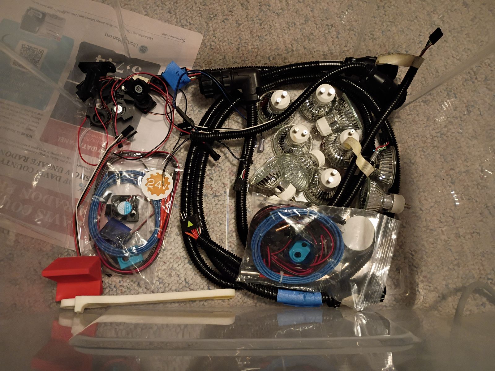 There are two brand new spare power supplies, a spare heater bed, a spare heating pad, and a bunch of other spare parts. I also have a partial reel of 3 mm black ABS filament and a full reel of 3 mm polycarbonate filament (never removed from its packaging). There are also two replacement full graphic smart LCD controllers.