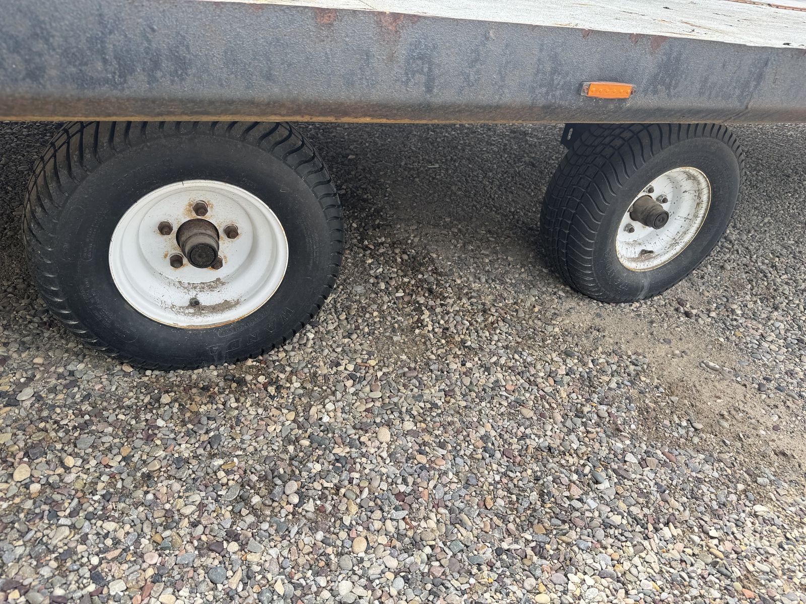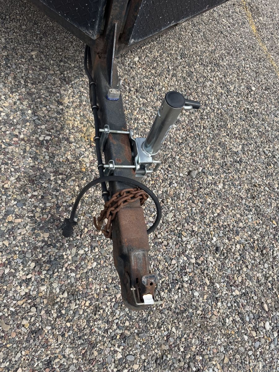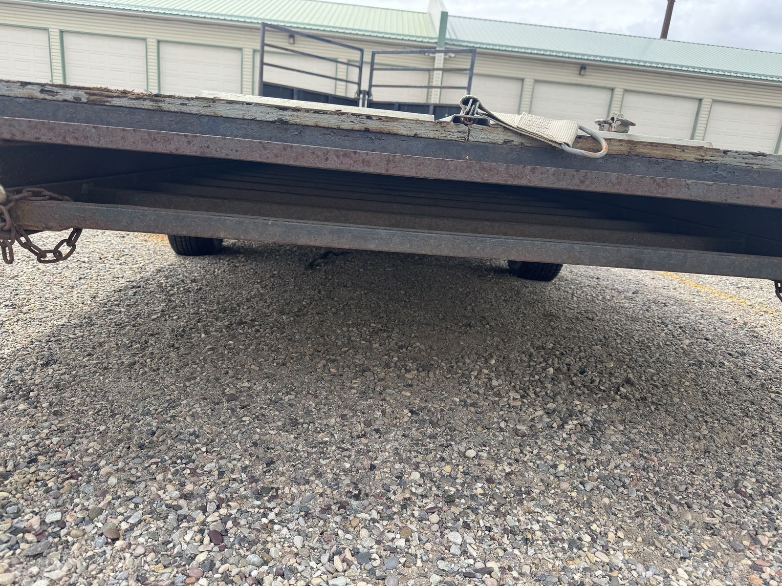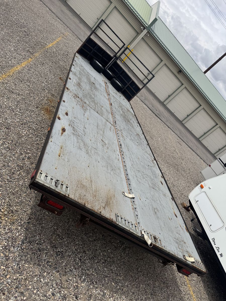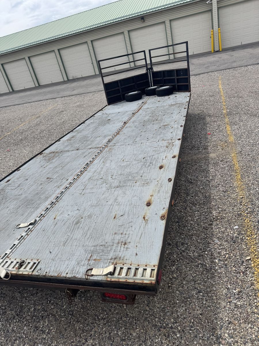Trailer description: 26.5 ft x 8 ft from the tongue to the end of the trailer, has a pullout ramp on the back, as well as two fold down ramps in the front, brand new tires.
