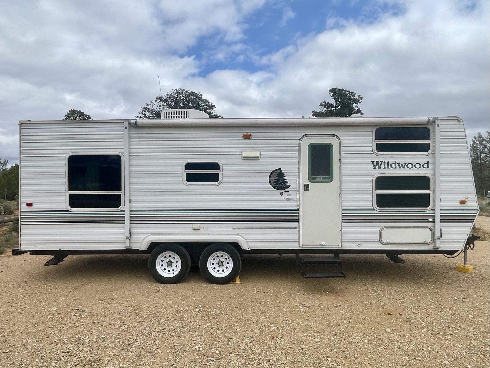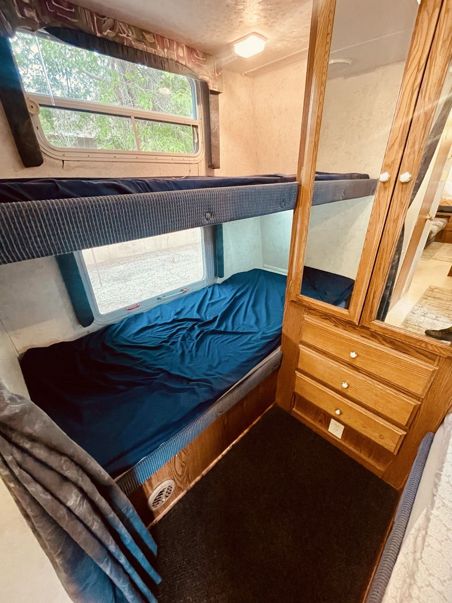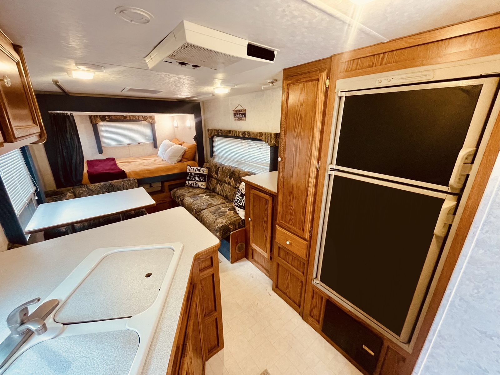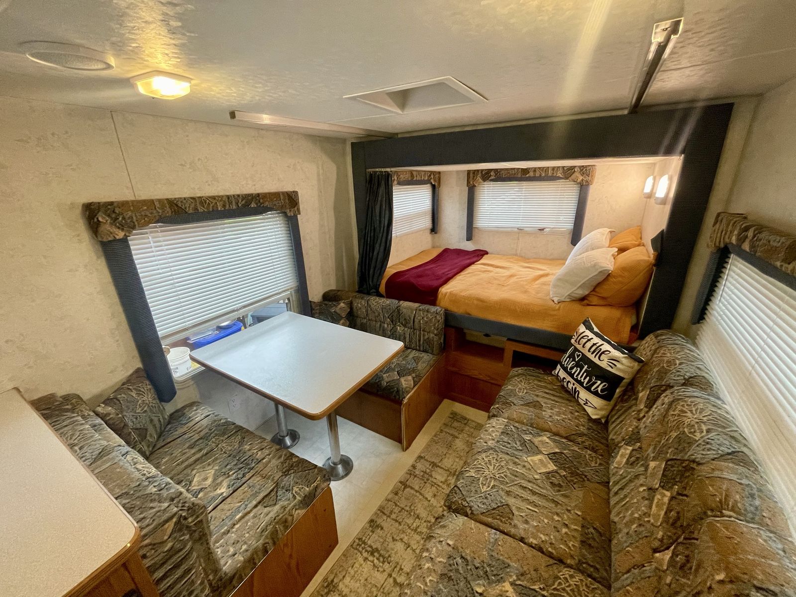 2005 Wildwood 27BHSS travel trailer with a hard-shell rear slide-out queen bed and a true front bunk room—so kids and adults actually get their own space. It’s a smart floor plan that lives bigger than its footprint.