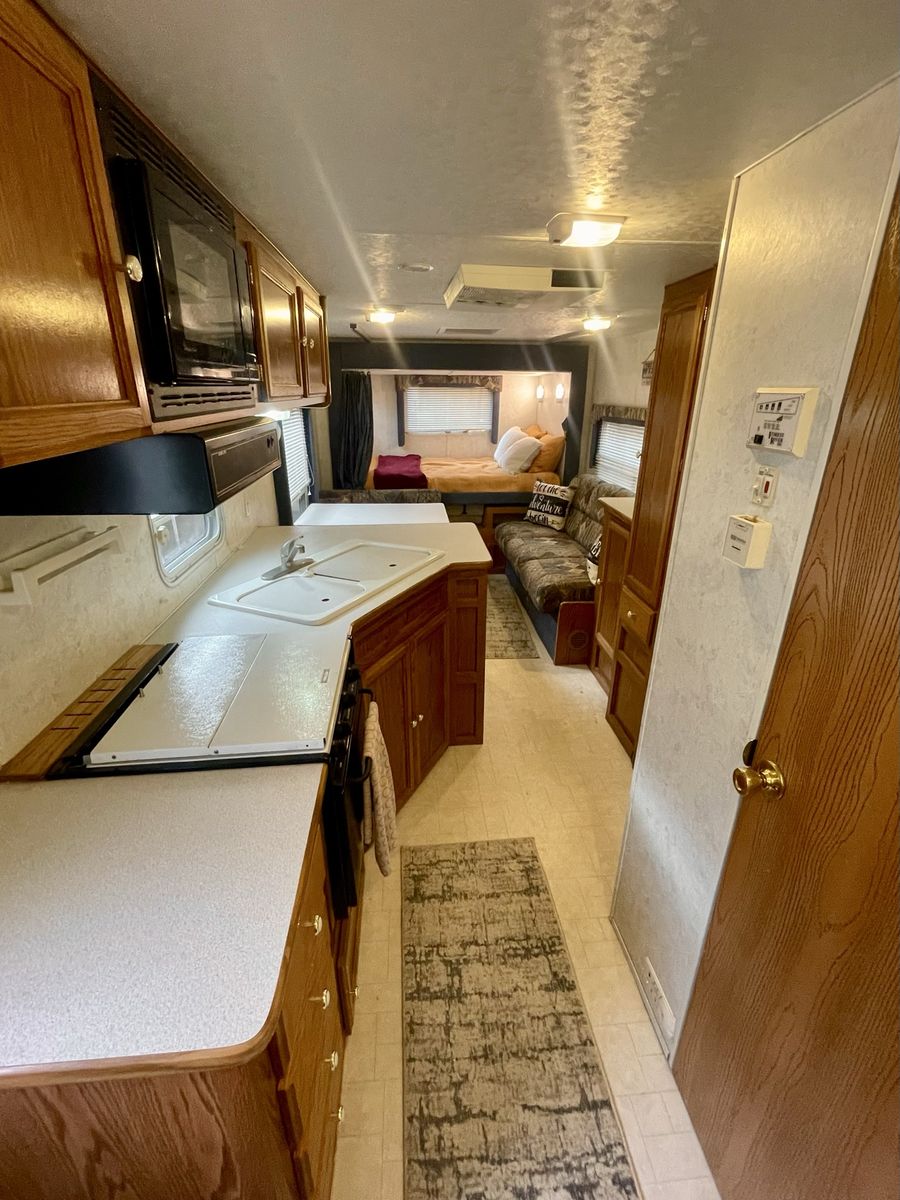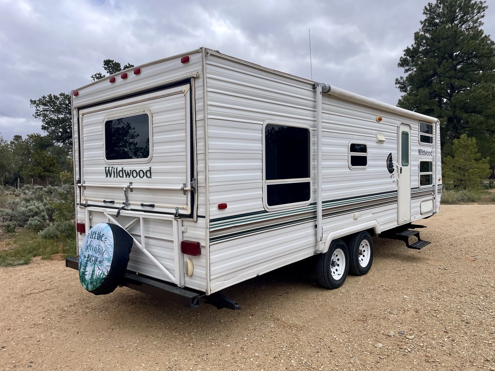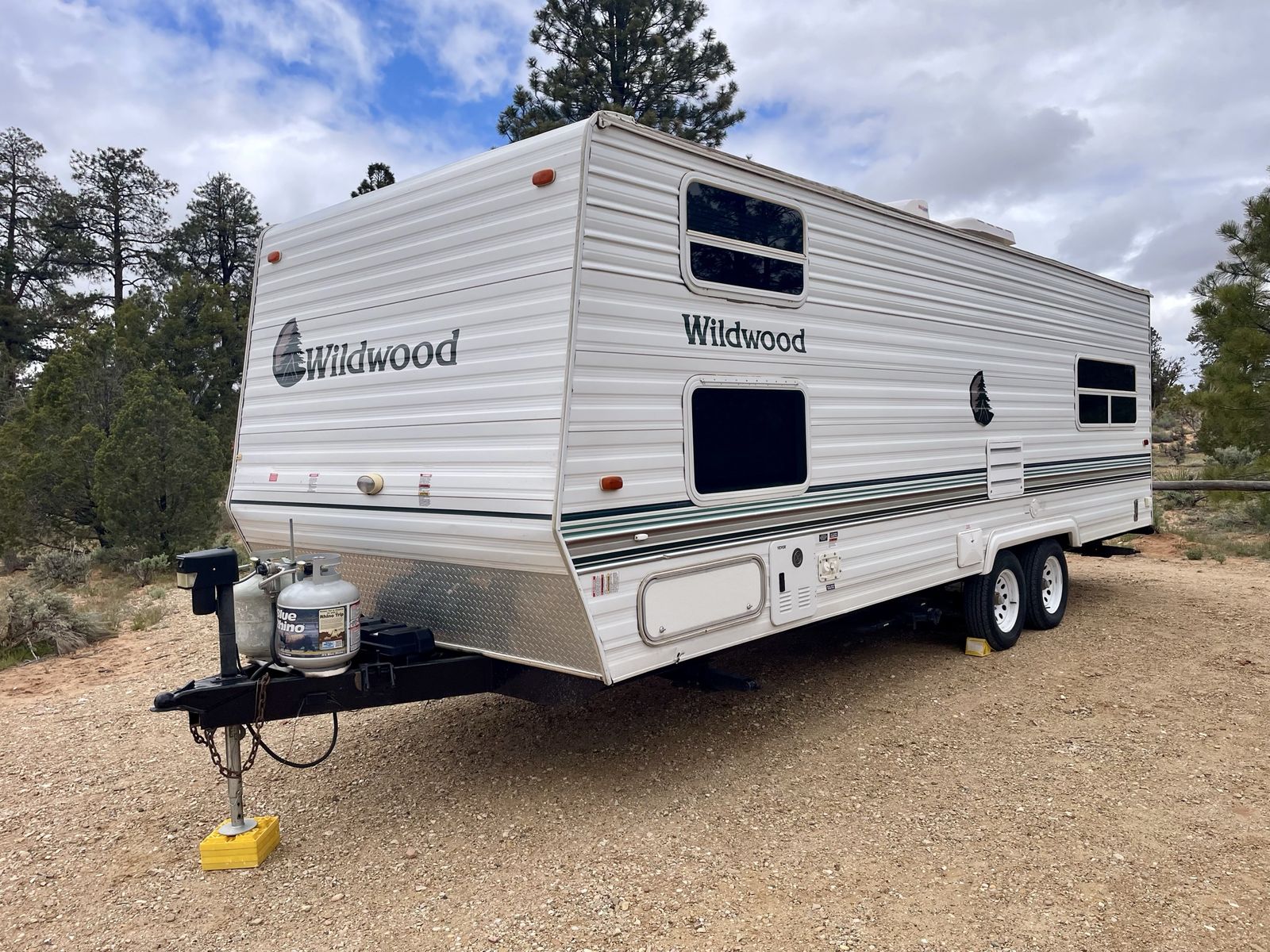 2005 Wildwood 27BHSS travel trailer with a hard-shell rear slide-out queen bed and a true front bunk room—so kids and adults actually get their own space. It’s a smart floor plan that lives bigger than its footprint.