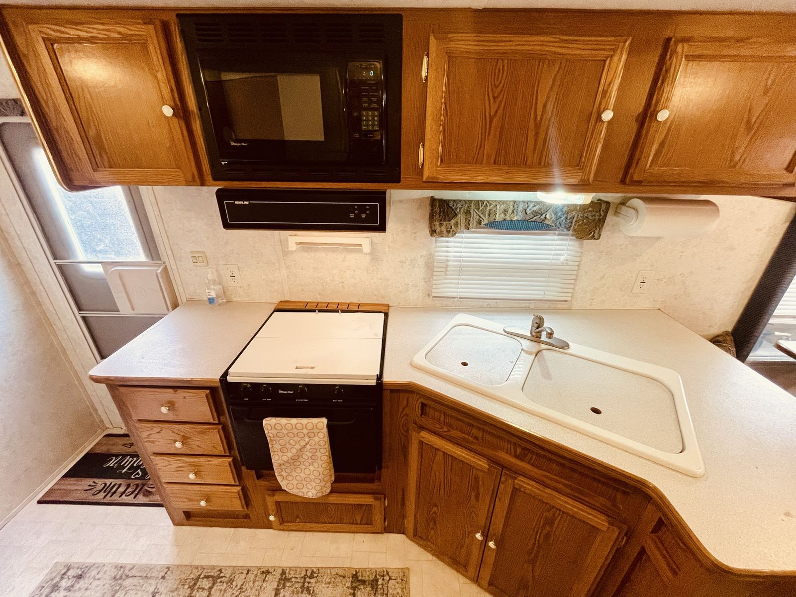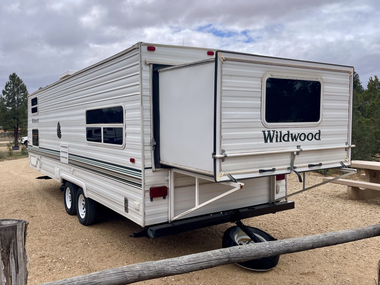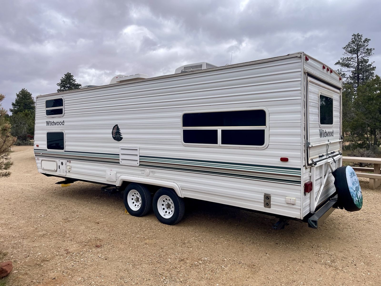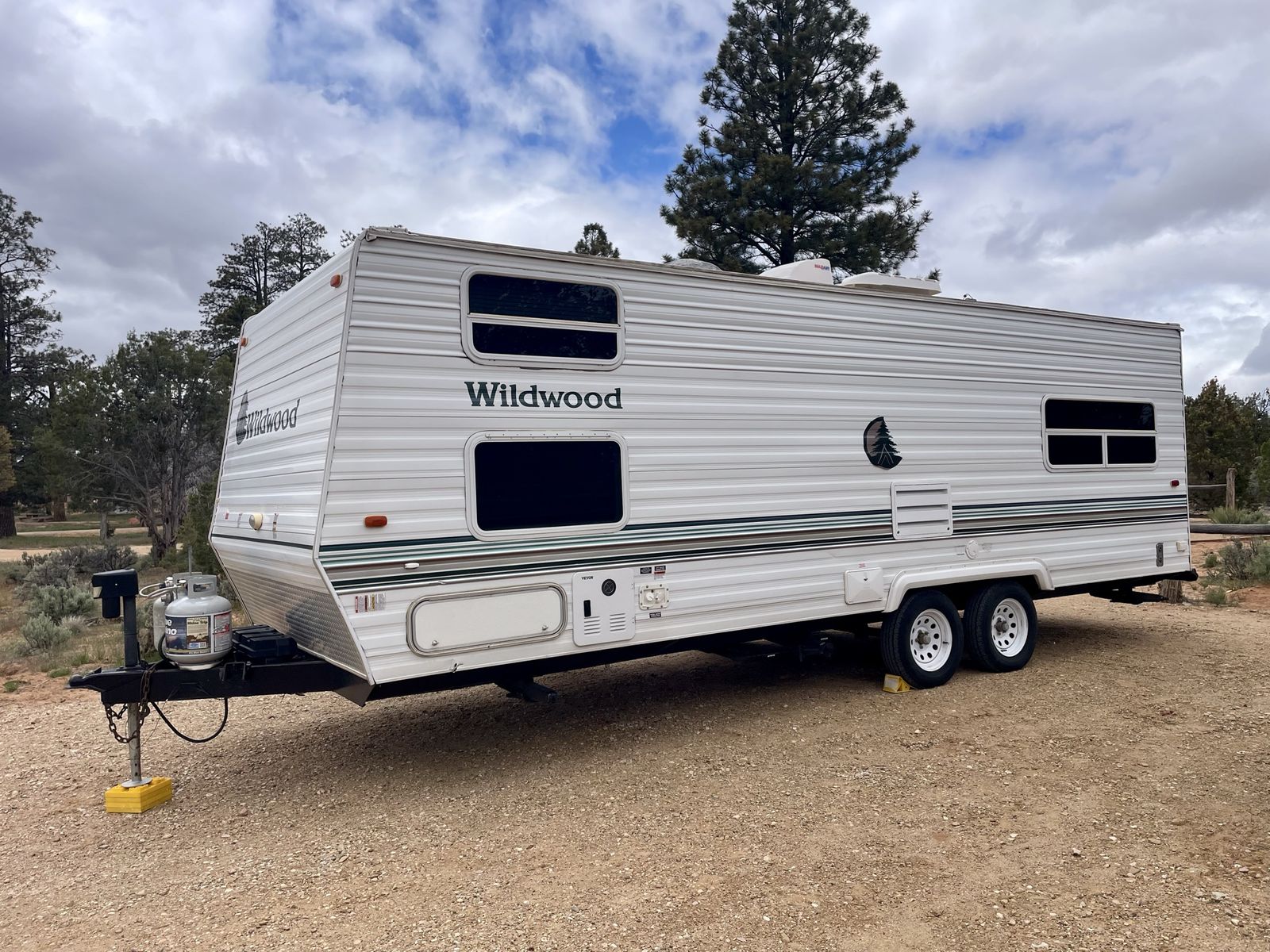 2005 Wildwood 27BHSS travel trailer with a hard-shell rear slide-out queen bed and a true front bunk room—so kids and adults actually get their own space. It’s a smart floor plan that lives bigger than its footprint.