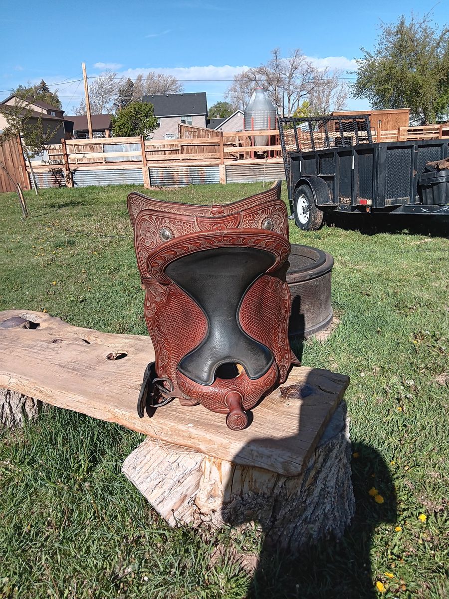• Intricate Tooling: Features deep, hand-tooled floral and basketweave patterns that cover the skirts, fenders, and pommel.