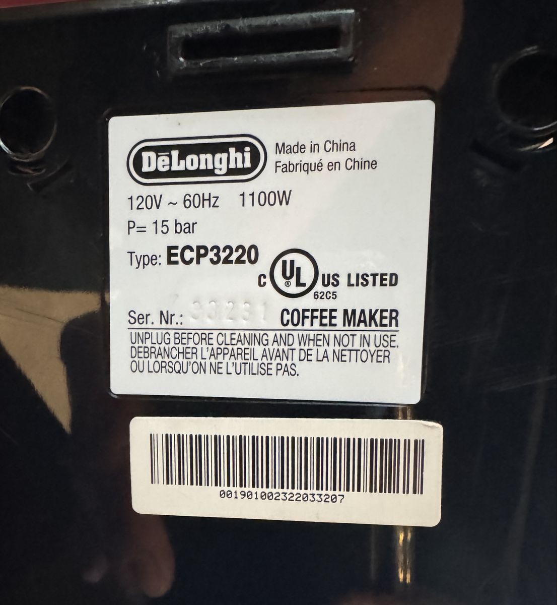De'Longhi A-3220-RMB Espresso Cappuccino Maker Manual Frother, 9.6 x 7.2 x 11.9, Black. Missing the front tray attachment