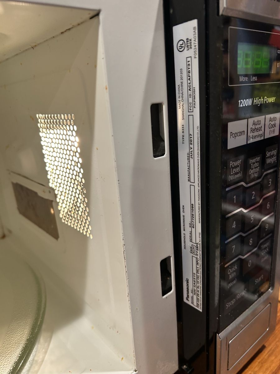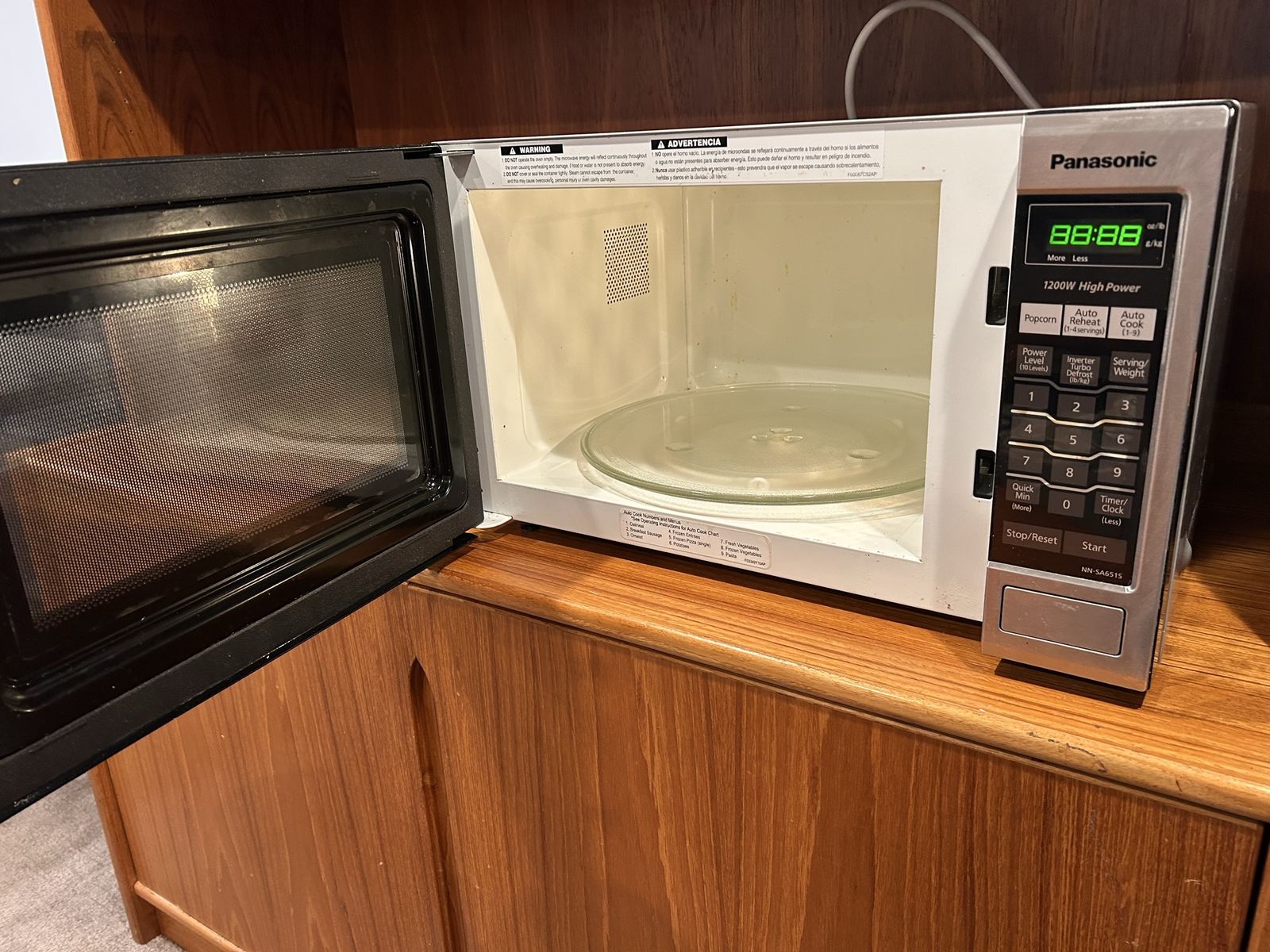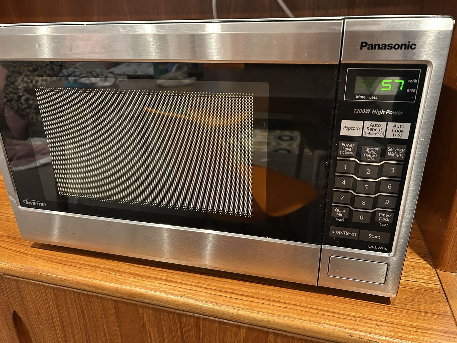 Panasonic NN-SA6515 microwave oven. Stainless steel. Works great! Doesn’t fit in our new kitchen.