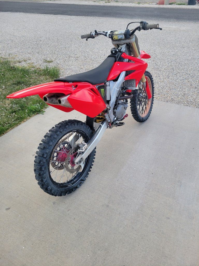 Venmo2009 Honda CRF 250R Selling for my son who is on Mission. Rebuilt top End with New Piston and rings Stage 2 Hotcam Timing chain Valve seals New seatcover New plastics New Clutch cable New Moose Racing Clutch Moose billet clutch basket(similar to Hinson) Water pump replaced New Tusk shift lever Maintained regularly,oils at 5-10hrs. Starts ,idles, and runs great.