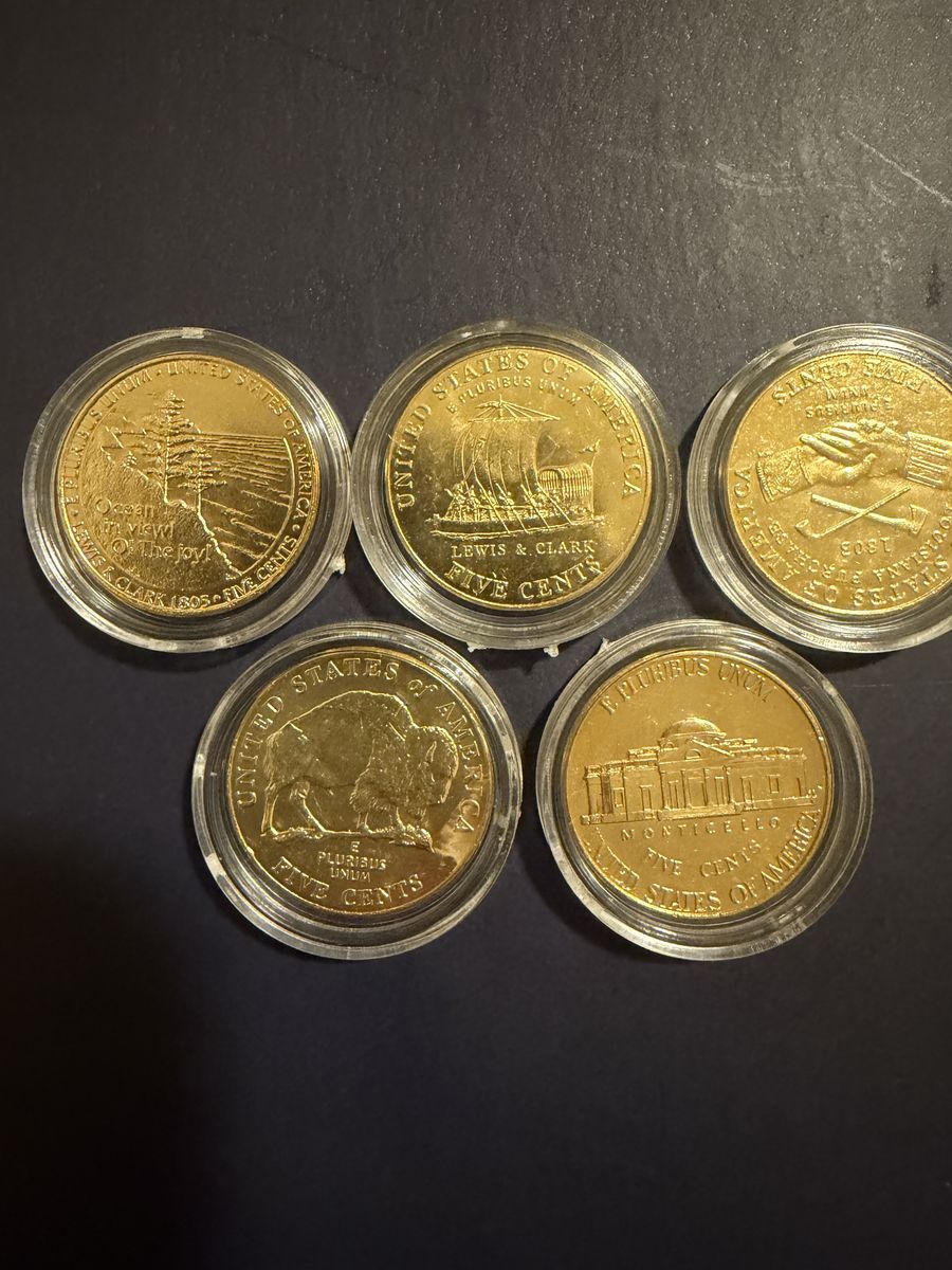 Venmo5 Westward Journey gold plated Jefferson nickels. 2004-2006.