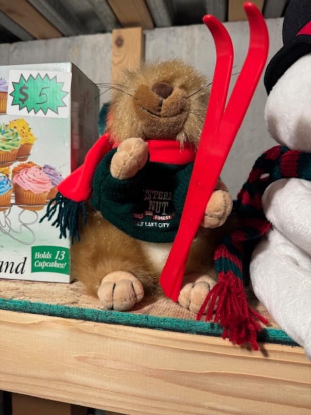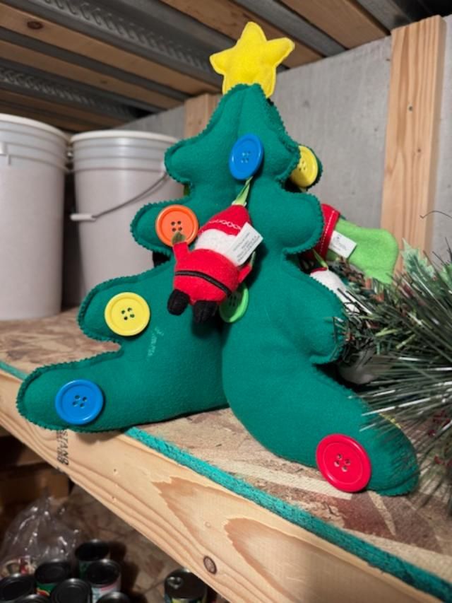 seasonal plush / fabric Christmas décor, Chipmunk, snowman, two bears, christmas tree