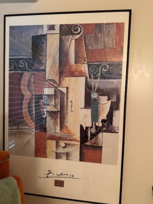 reproduction print of a Pablo Picasso work, specifically in the cubist style.