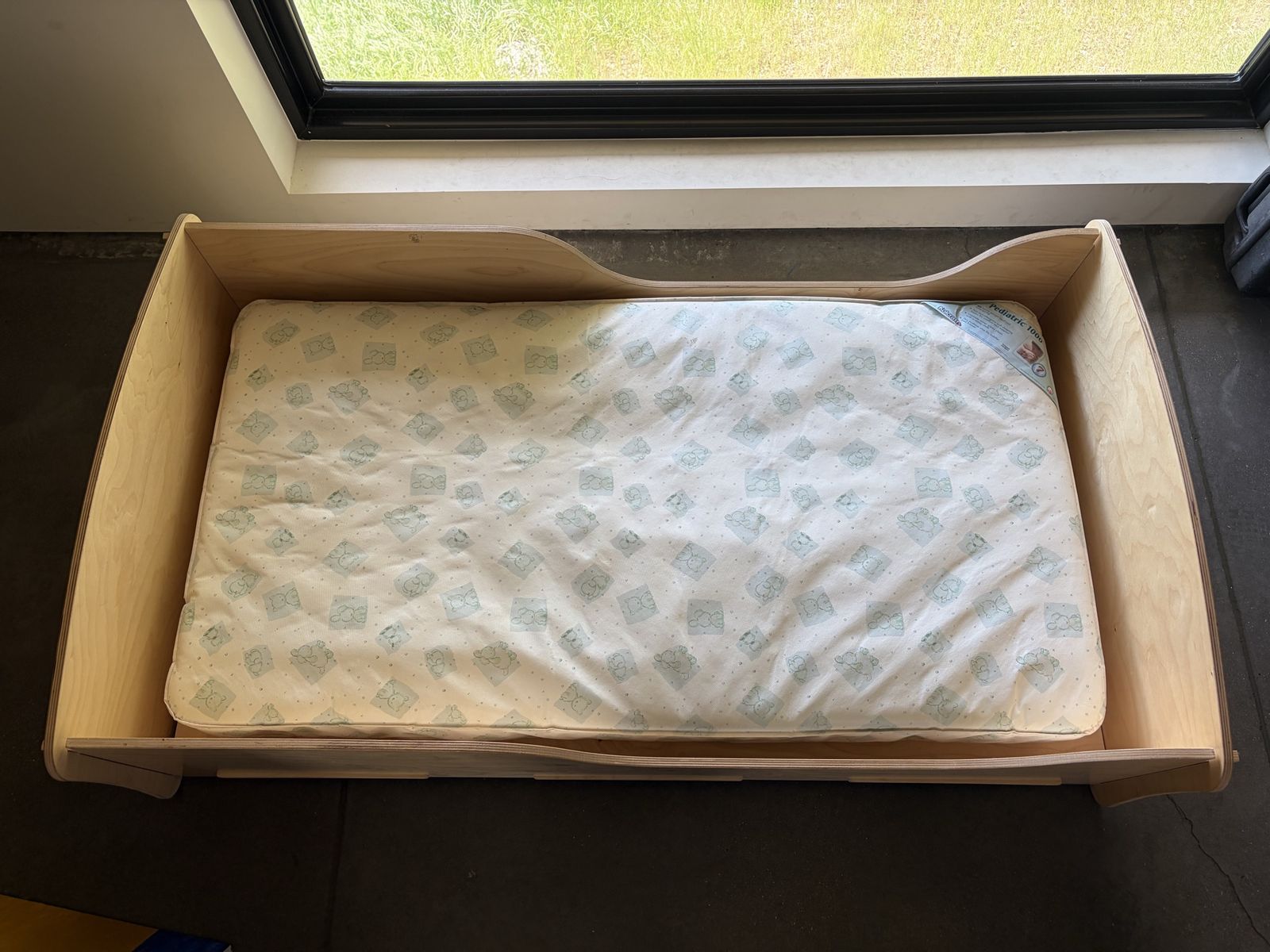 VenmoBeautiful custom built toddler bed is made of solid Baltic birch plywood. Comes with a Kolcraft Pediatric 1000 spring mattress.