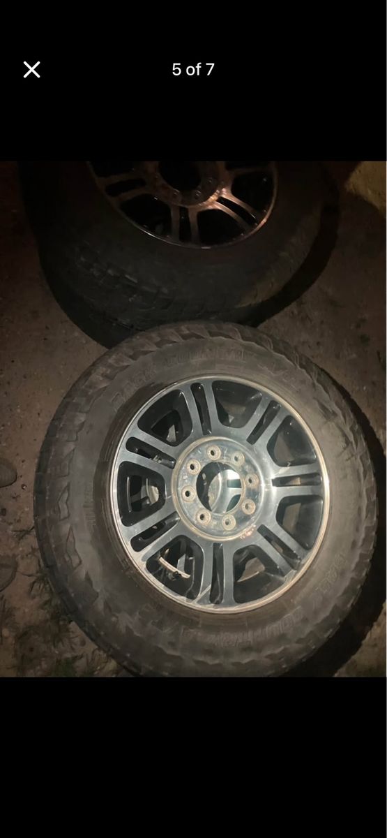 Venmo2016 ford f250 platinum wheels and hub caps lug nuts as well tires have 5/32 left on them, and are in good shape. No weird wearing or anything. Would probably be good for another 5- 10 k miles manufacture in 2022 tires size is. 275/65r20