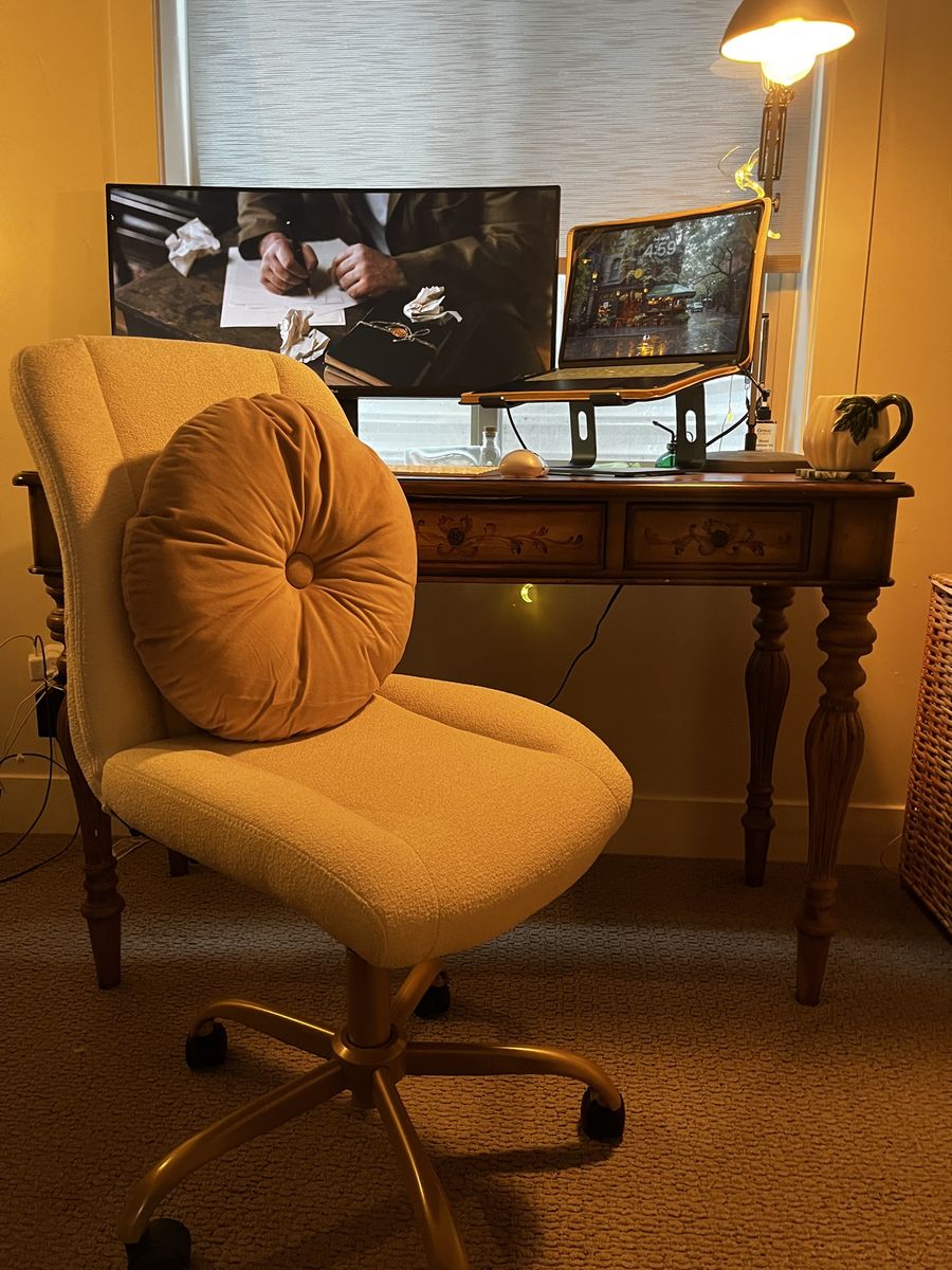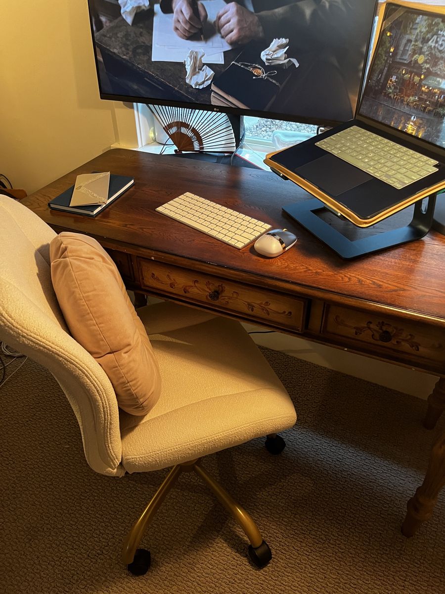 ApplePayThis elegant, white office chair is perfect for a home office. It takes up very little space, has adjustable height, and is beautiful to the eye. If you are anything like me, you may enjoy sitting criss-cross while you work and this chair lets you do that. You can also take it apart for easy transportation when moving.