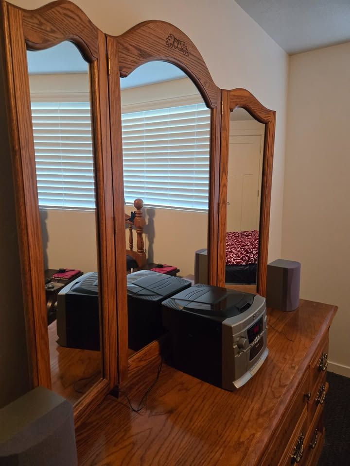 VenmoBeautiful, large wooden dresser, and matching mirror.