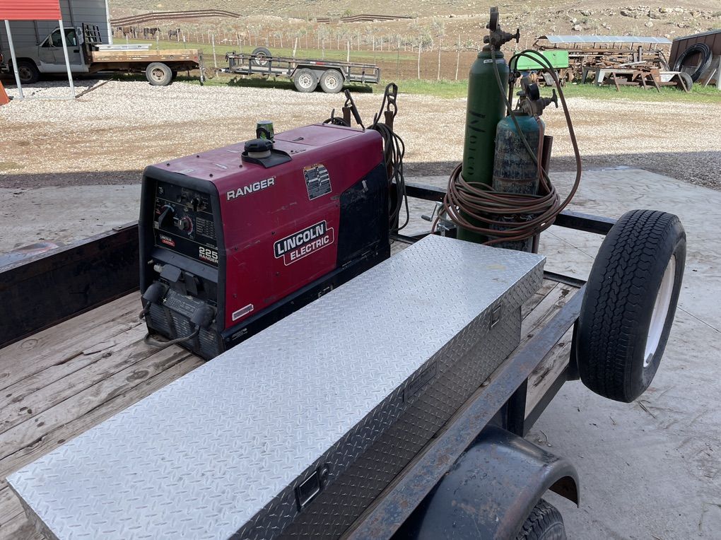 Welder cutting torch toolbox trailer. 222.8 hours. Good little setup.