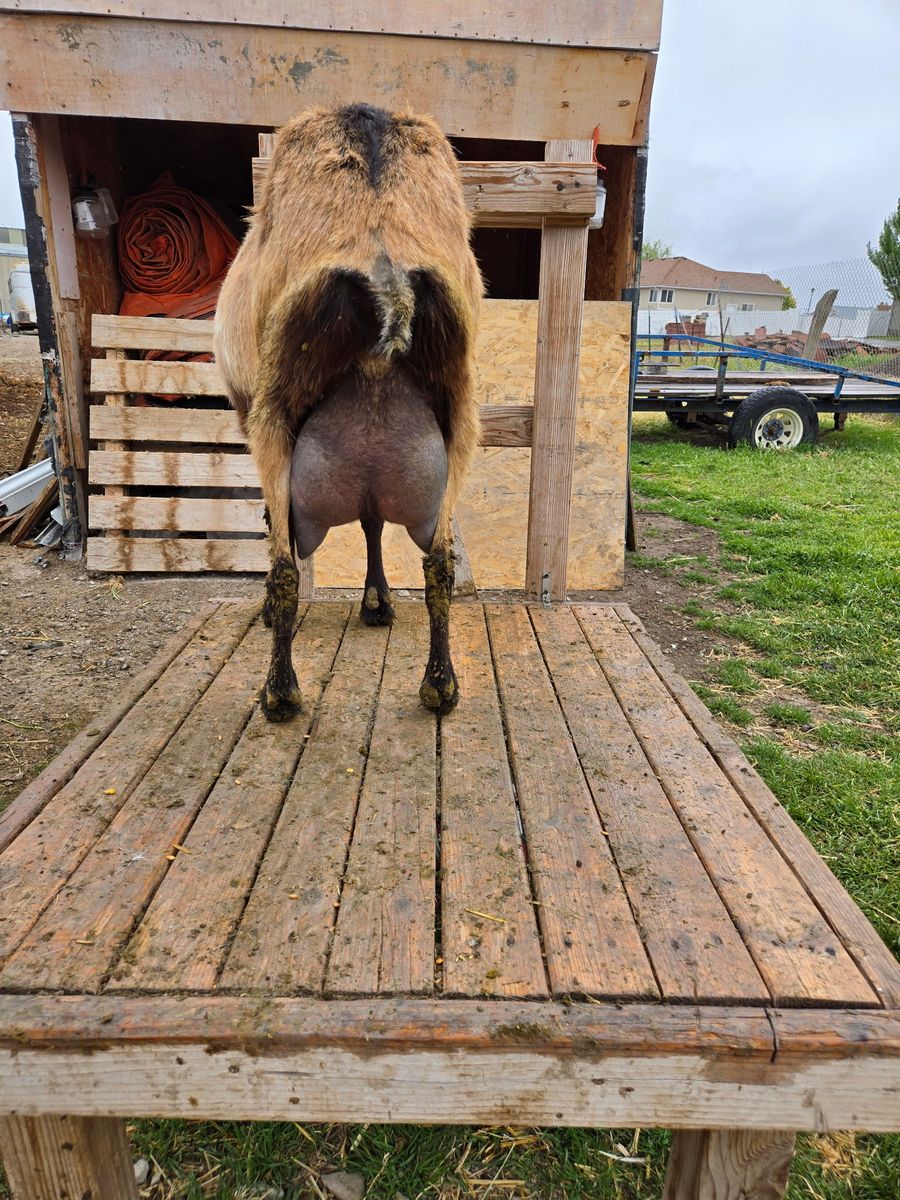 Great addition to any dairy herd or for someone looking to increase milk production with a reliable, high-quality doe. Asking for $450