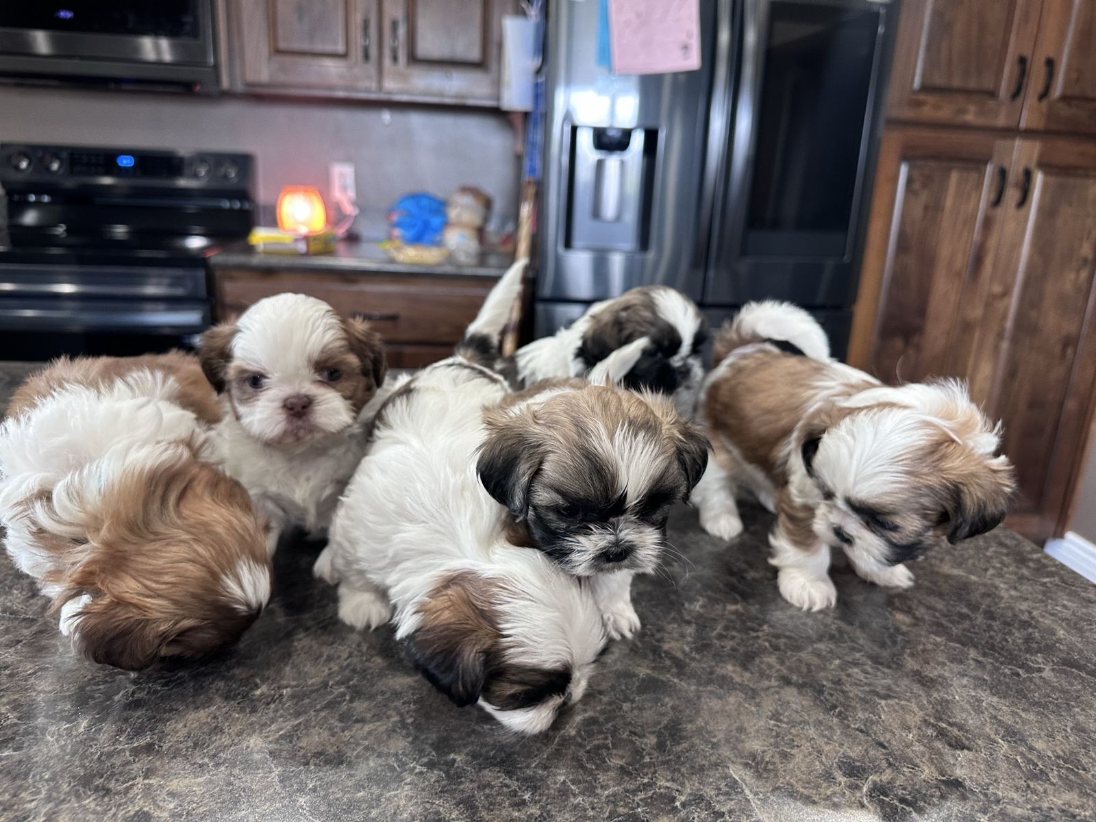Venmo6 beautiful purebred Shih Tzu puppies born March 20 2026! Mom is 7 lbs and father is 9 lbs. Mother has been on prenatal vitamins since November 2025 and continues on prenatal until puppies are fully weened. Mother and father both have all recommended and optional vaccinations, mom’s last boosters was on March 13. Dew claws have been removed and puppies have had a well puppy check. Puppies will get their first round of puppy vaccinations at 6 weeks old. Puppies will be ready to go to their new family around May 18, 2026. PUPPY # 6 HAS BEEN RESERVED!