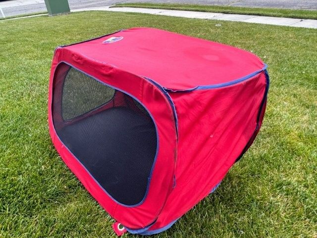 38"x20"x20" SportPet Pop-Open Kennel offers comfortable, breathable, and secure space. Perfect for Boxers, Australian Shepherds, smaller Golden Retrievers, So easy to transport.