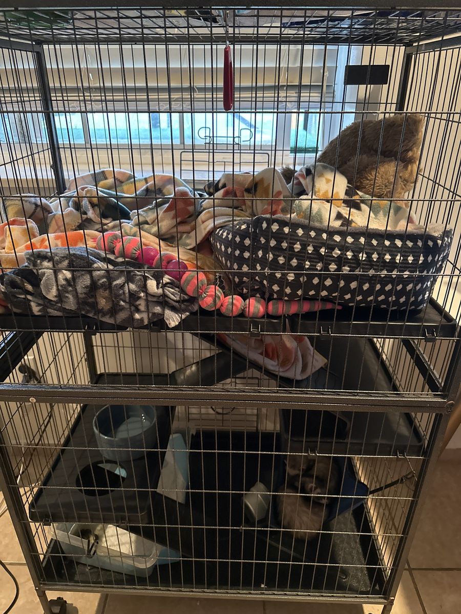 VenmoTwo female ferrets both around one and a half years old comes with cage, food potty pads. Everything you need for them for a little while they have their shots. They’re both spayed and they are super friendly and they love to play. You have to buy them as a pair they can’t be separated.