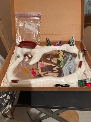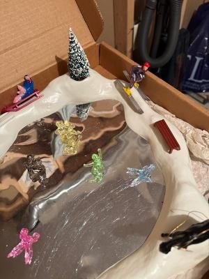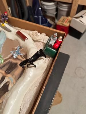 Bridge, benches, trees, sledders Original box + styrofoam Looks complete