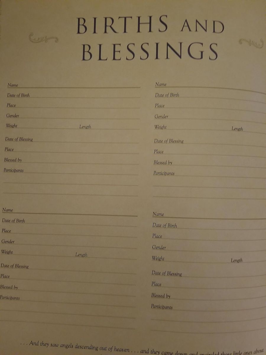 Includes family history pages for recording births, blessings, baptisms and confirmations, marriages, and other significant events.
