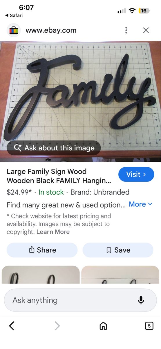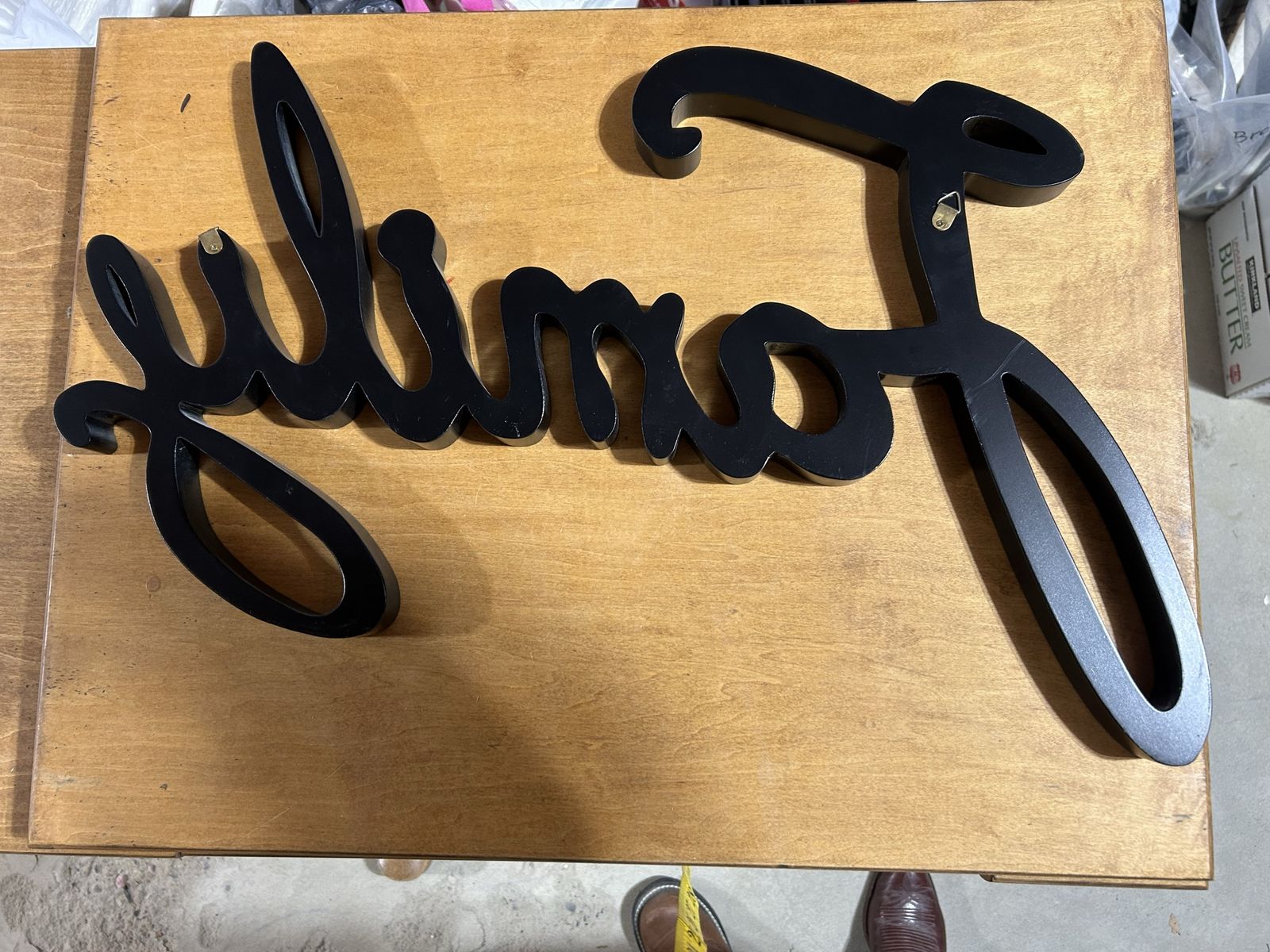 VenmoLarge like new wood black cursive Family wall sign with two hooks. Clean smoke free. Cash or Venmo. Located in and picked up from Alpine.