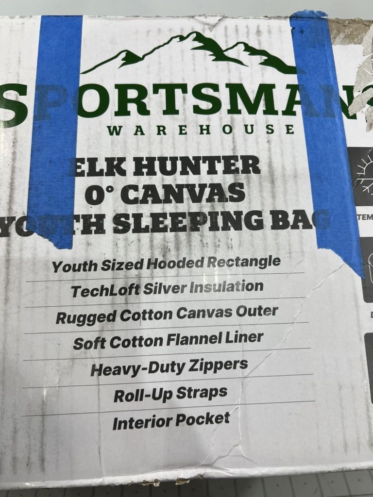 Durable and insulated sleeping bag designed for youth, featuring TechLoft silver insulation, rugged canvas, and a soft flannel liner for warmth and comfort.