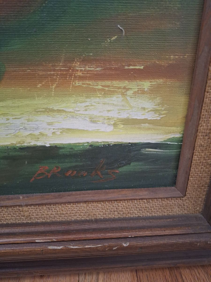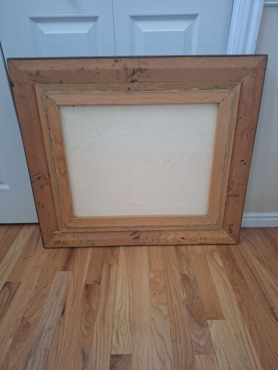 Vintage oil painting on canvas depicting a basket of fruit. 31.75" wide x 28.25" tall. Frame needs work. Cash only.